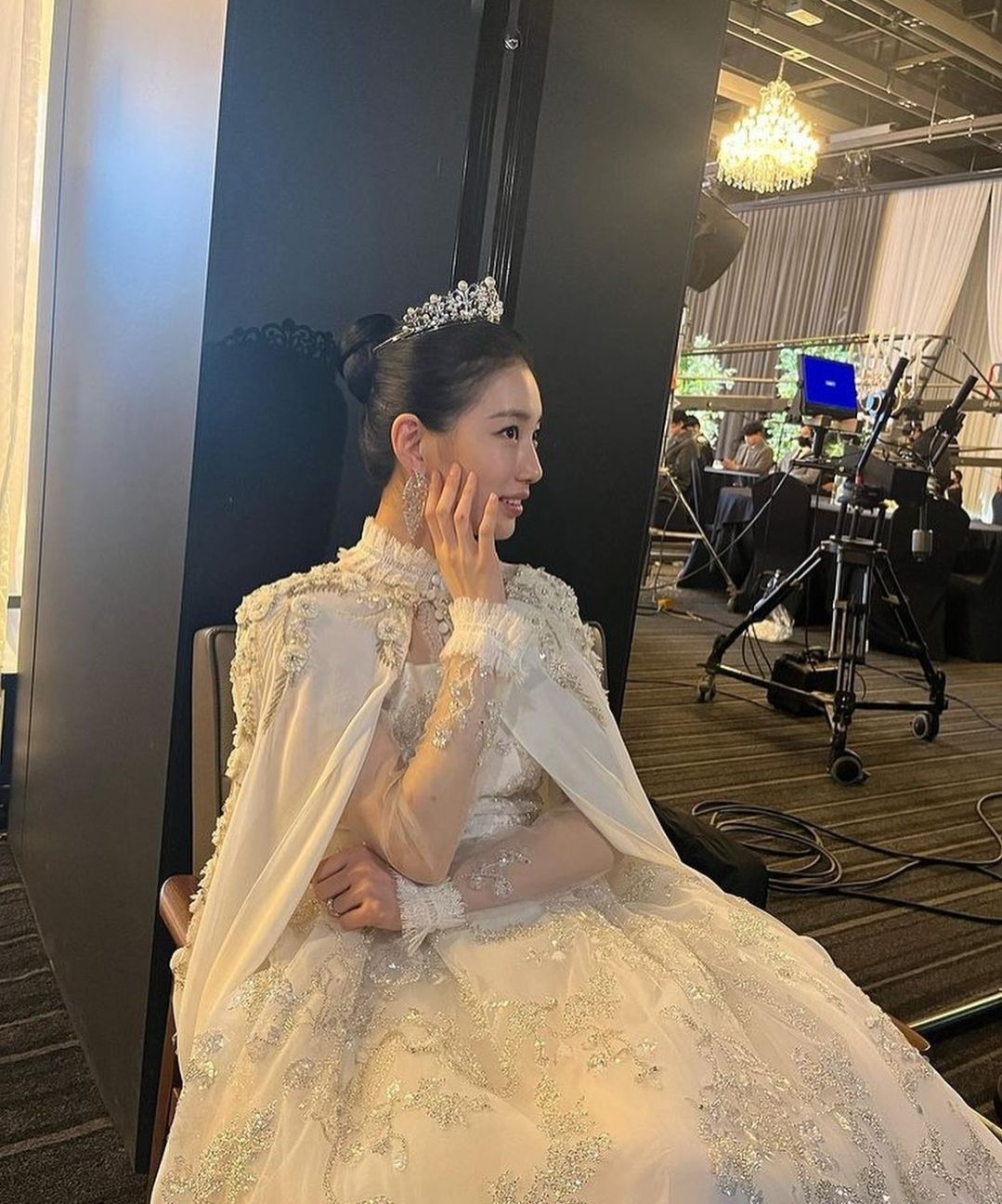 수지는 본인의 인스타에서 촬영중 웨딩드레스를 입고 찍은 사진을 업로드하기도 했습니다.