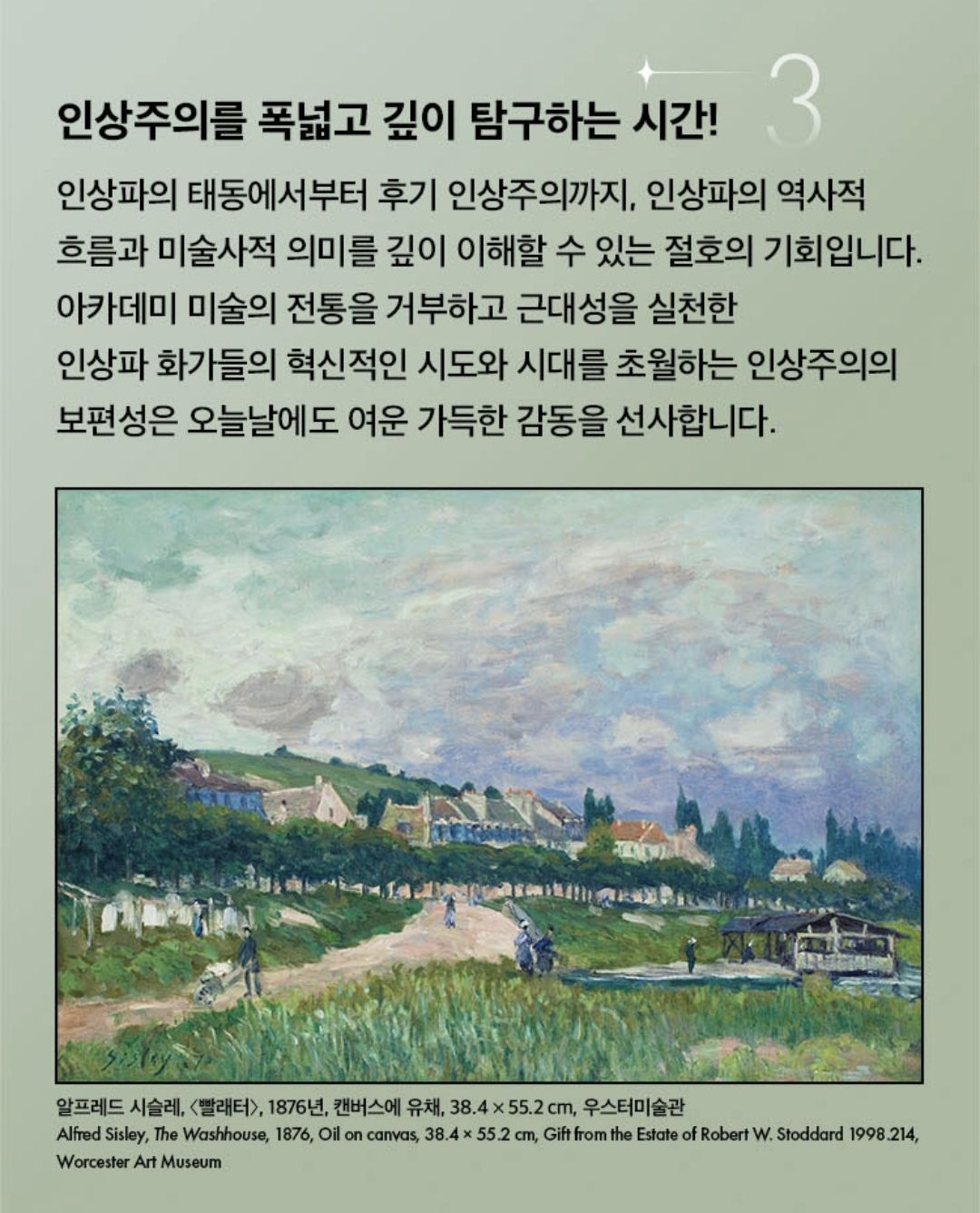 인상주의의 세계적인 진화와 매력을 깊이 있게 조명하는 전시이기도 하지만,