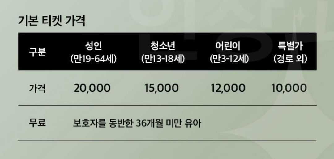 성인 기준 정가 20,000원에서 40% 할인된 12,000원으로 구매가능하고, 다른 혜택들과 중복 할인은 불가합니다.