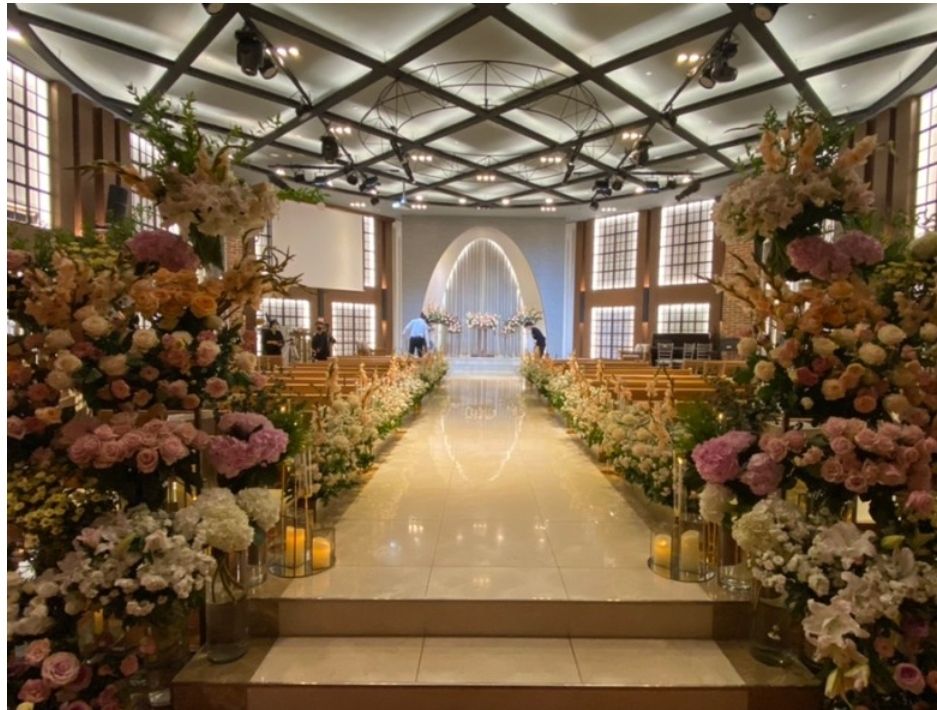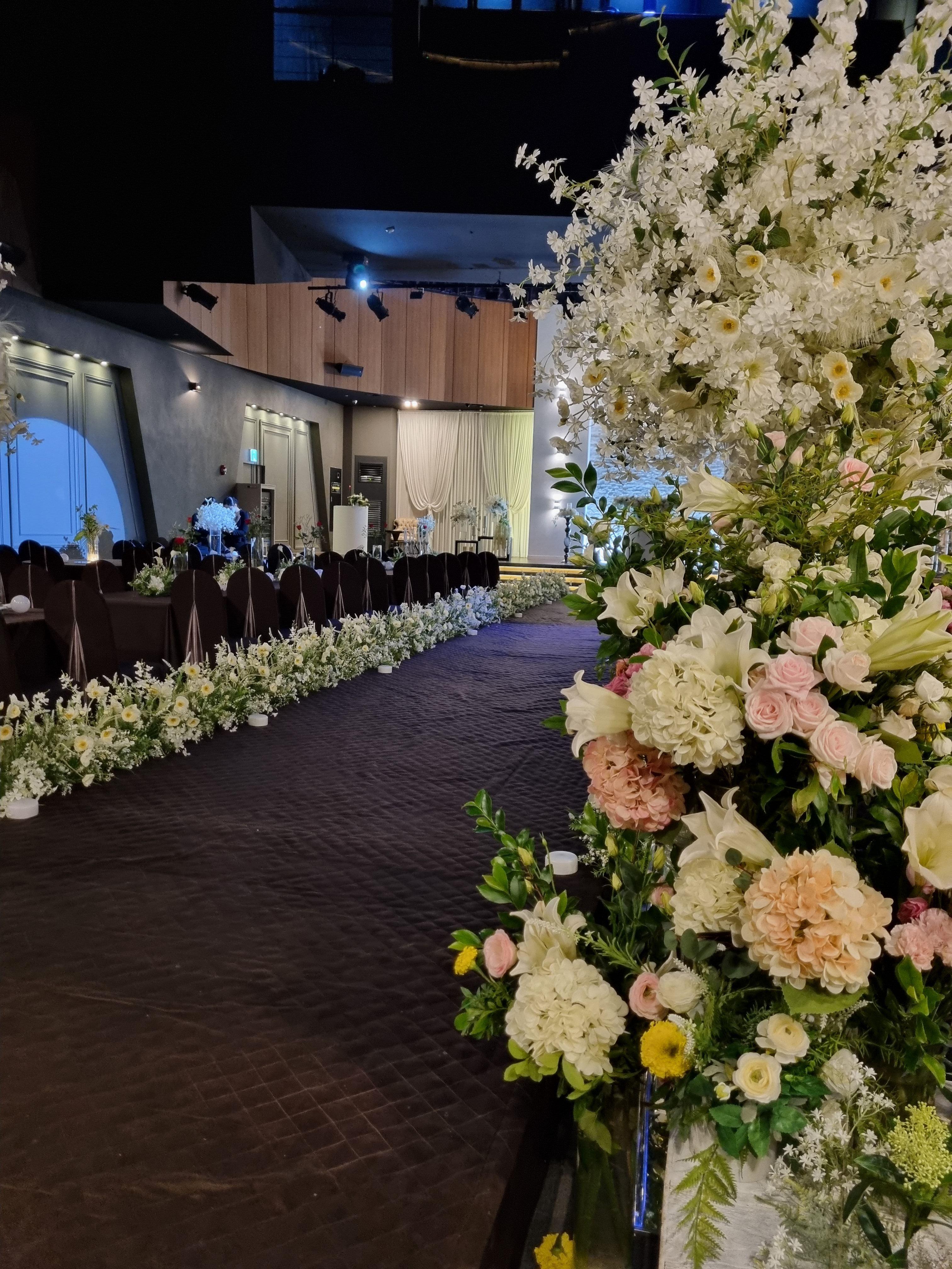 버진로드가 좀 짧은 편이고 플라워장식은 조화와 생화가 섞여서 진행되며, 웨딩홀 계약시 본식스냅촬영이 필수로 포함되어 있는 점 참고하세요.