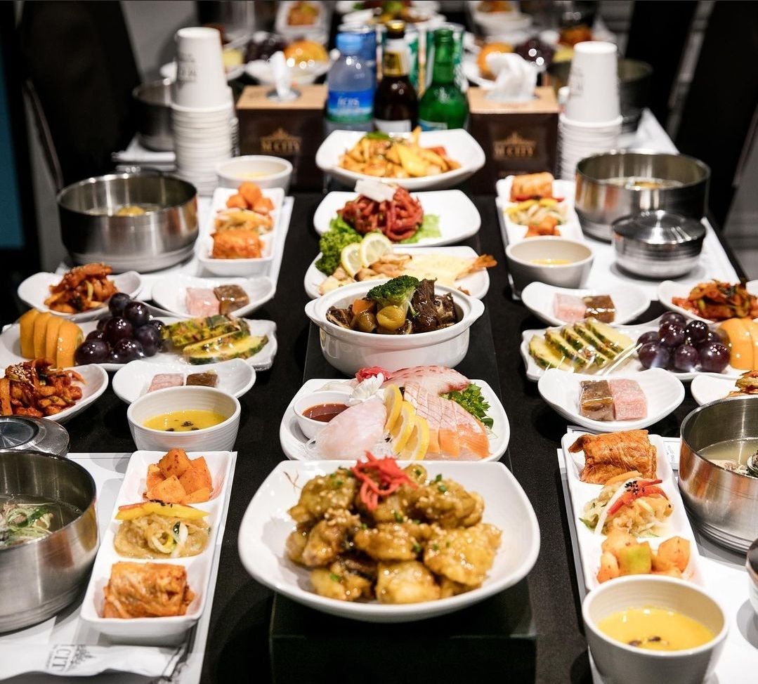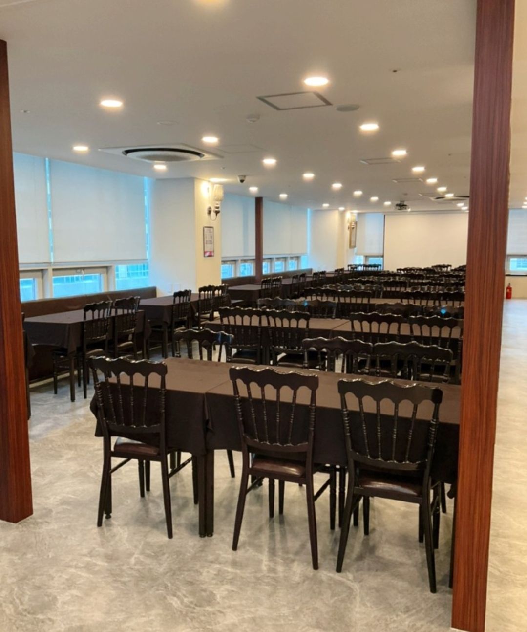 뷔페식이며 연회장이 복층으로 되어 있어 혼주측과 신랑신부 지인들이 분리되어 먹을 수 있긴 하지만 동선이 조금 불편할 수 있겠습니다.
