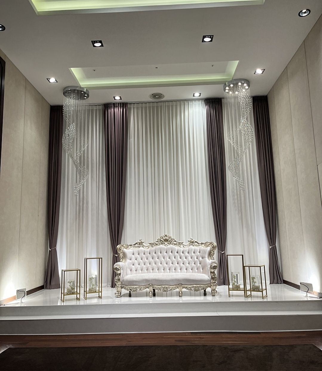 천장의 샹들리에도 화려하고 신부가 걸어갈때 맞춰서 위의 조명이 켜지는 연출도 좋아하시는 분들이 많으시죠.