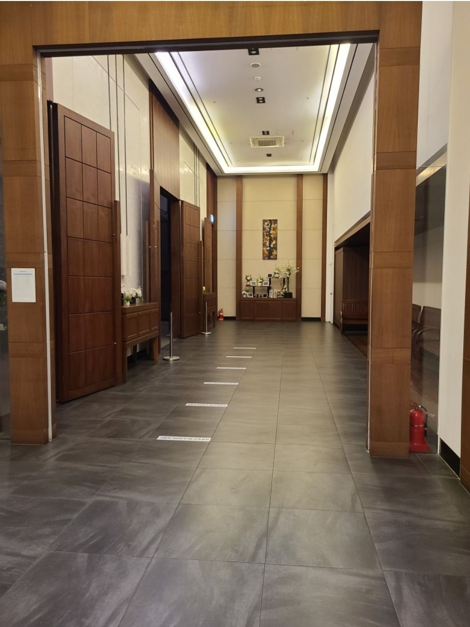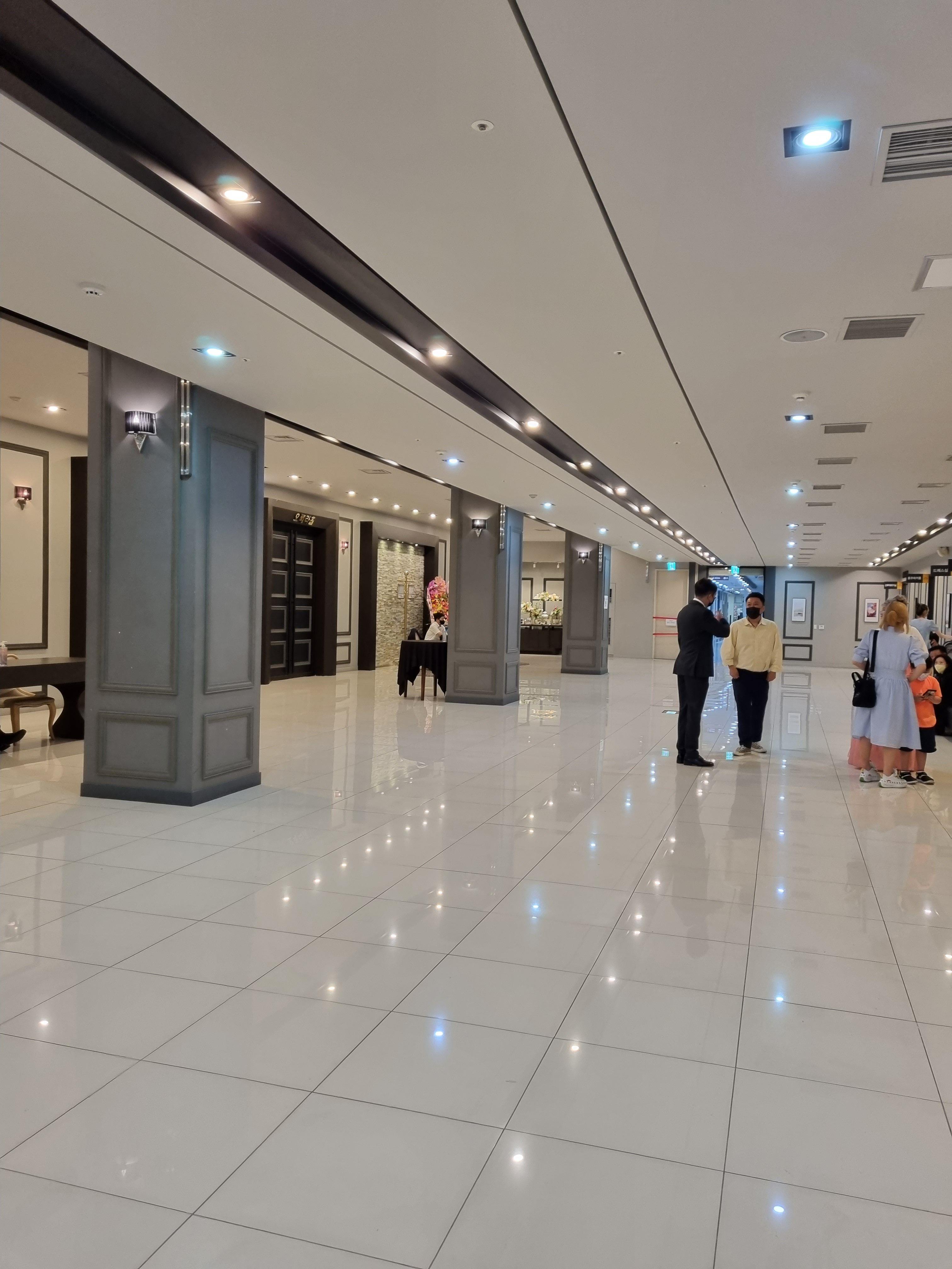 다소 정신사나운 엘레베이터를 타고 내리면 층고가 높고 깔끔한 로비가 돋보이는데 단독홀이며, 한층에 웨딩홀과 연회장이 같이 있어 동선이 편리합니다.