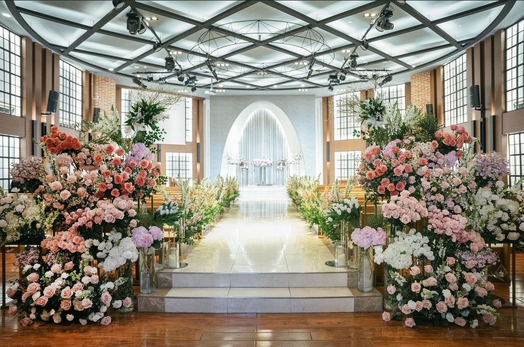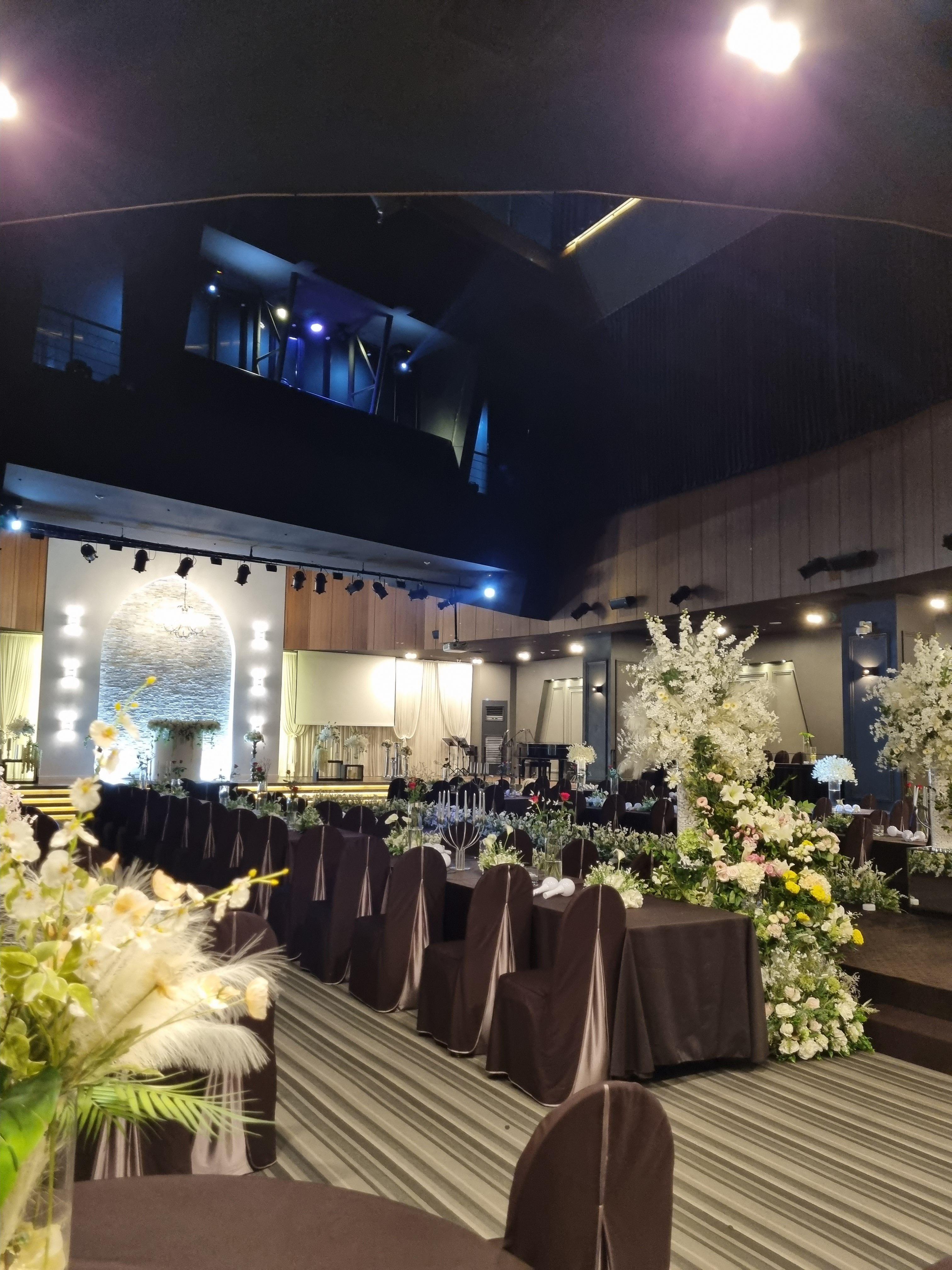 천고가 조금 낮은 편이라 홀의 규모가 크진 않지만 무난한 웨딩스타일을 원하시는 분들은 참고하시면 좋겠습니다.