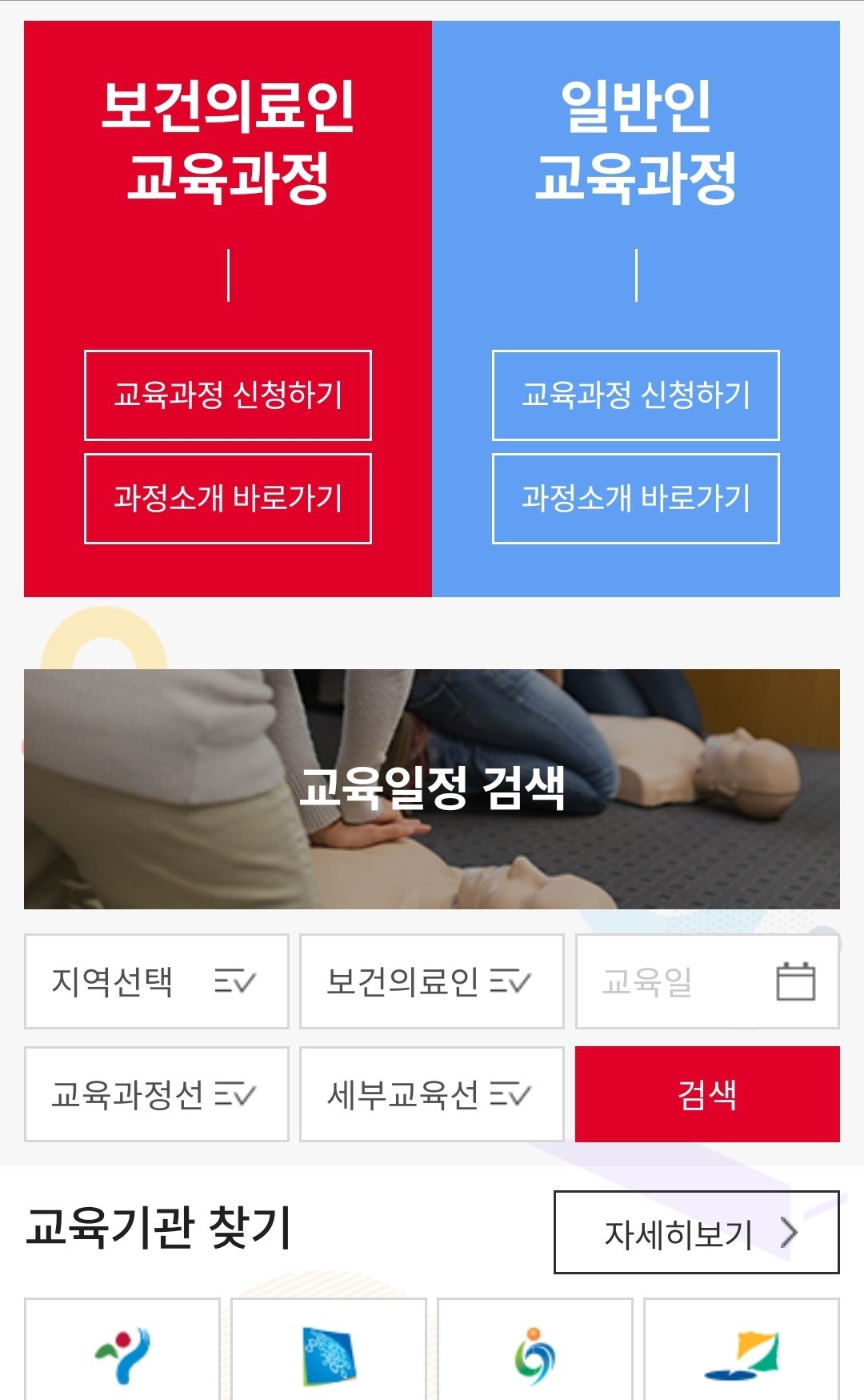 대한심폐소생술협회에서는 일반인을 대상으로 한 심폐소생술 교육을 진행하고 있습니다. 대한심폐소생술 협회의 홈페이지에서 보건의료인 교육과정과 일반인 교육과정을 신청할 수 있습니다.