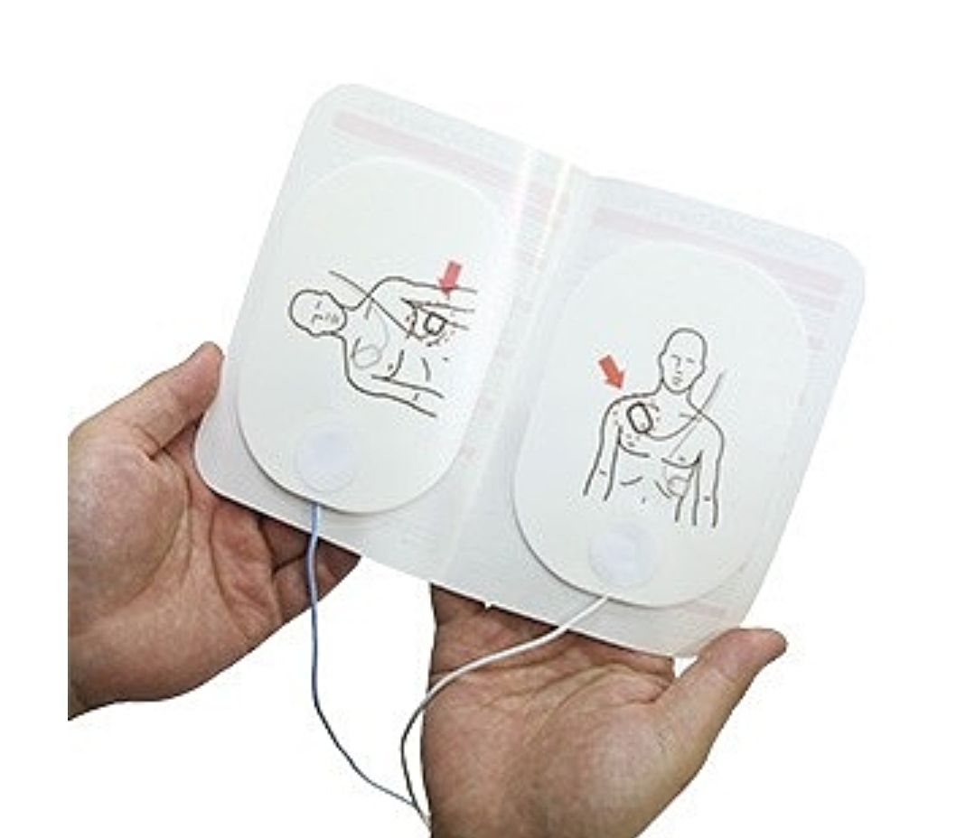 자동 심장충격기의 전원을 켭니다. 전원이 들어오면 음성이 나오면서 절차를 안내해줍니다.