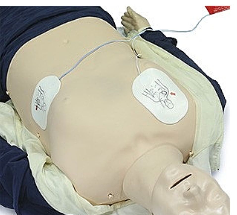 상체를 노출시킨 후 우측 쇄골 아래쪽에 패드를 부착합니다.
