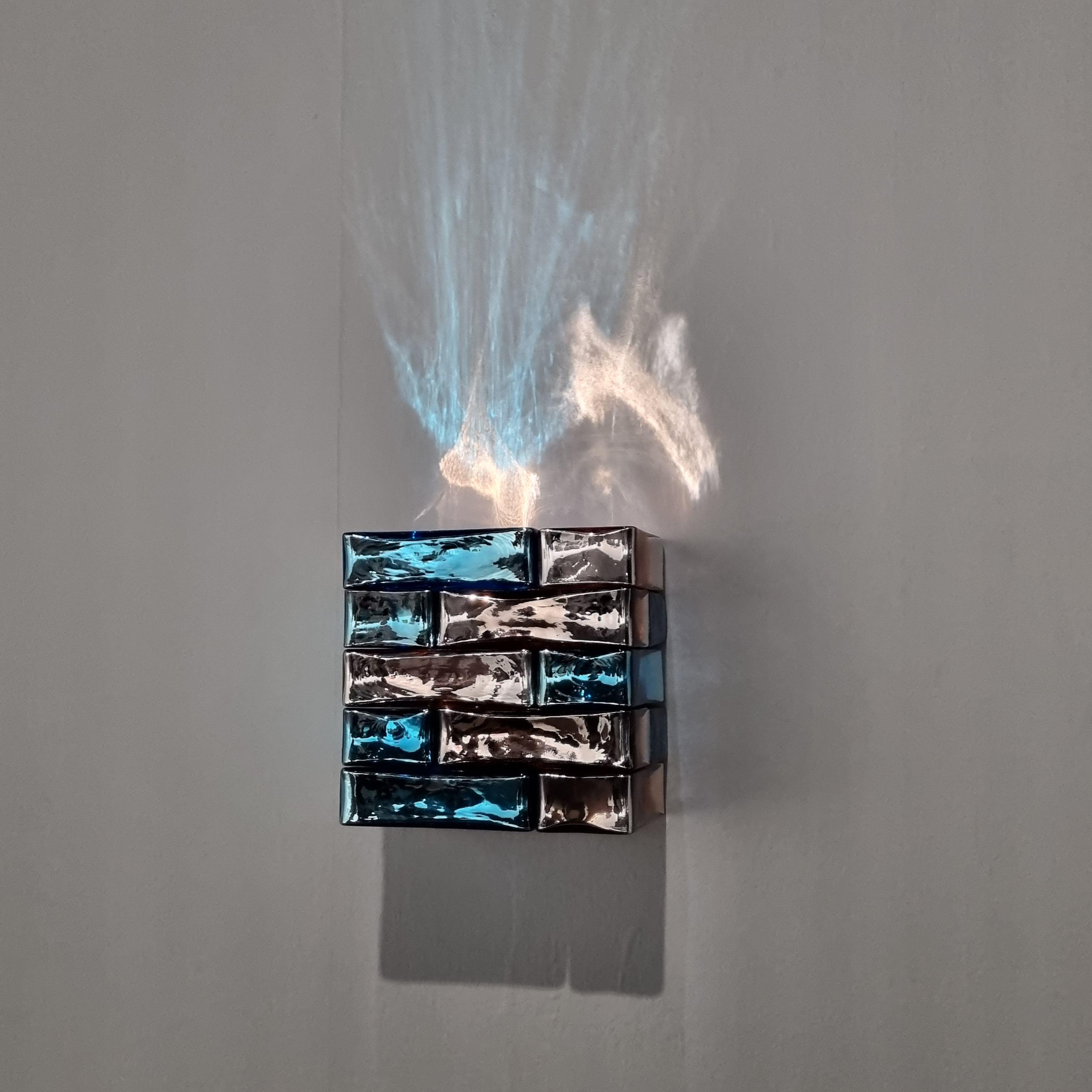 이처럼 장 미셸 오토니엘의 작품들은 언뜻 아름답기만 한 것처럼 보일 수 있지만, 수공으로 만드는 과정에서 생긴 유리의 흔적들이 보입니다. 구슬 하나만 보았을때는 흠집으로 보이지만 여러개의 구슬이 꿰어져 완성된 하나의 목걸이에서는 조화로운 아름다움을 보여주고, 유리 벽돌에 섞인 불순물은 벽면에 다채로운 빛의 결을 만들어내고 있습니다.