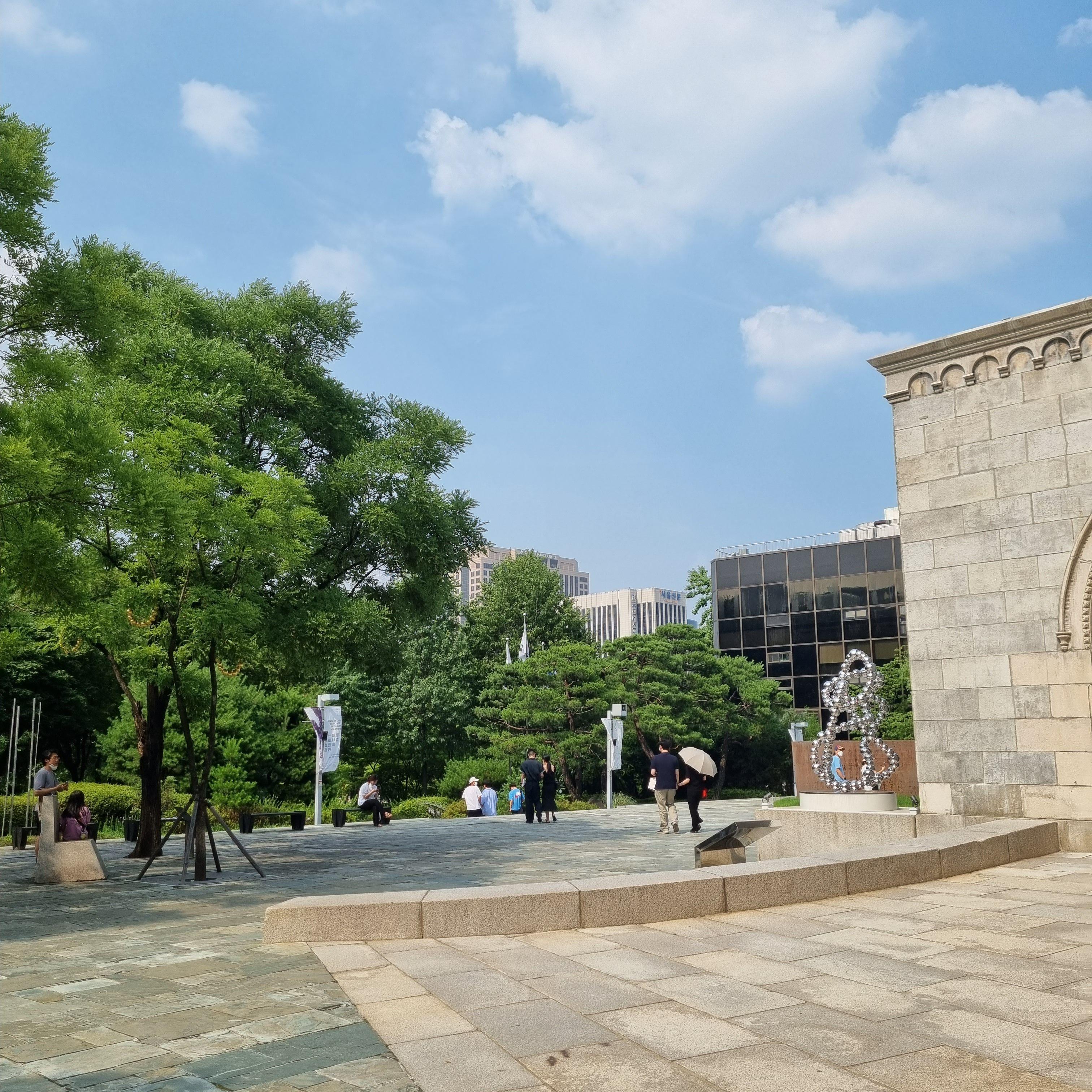 서울시립미술관에 입구 양쪽에 서있는 은색 조각작품들이 수호자처럼 관람객을 맞이합니다.