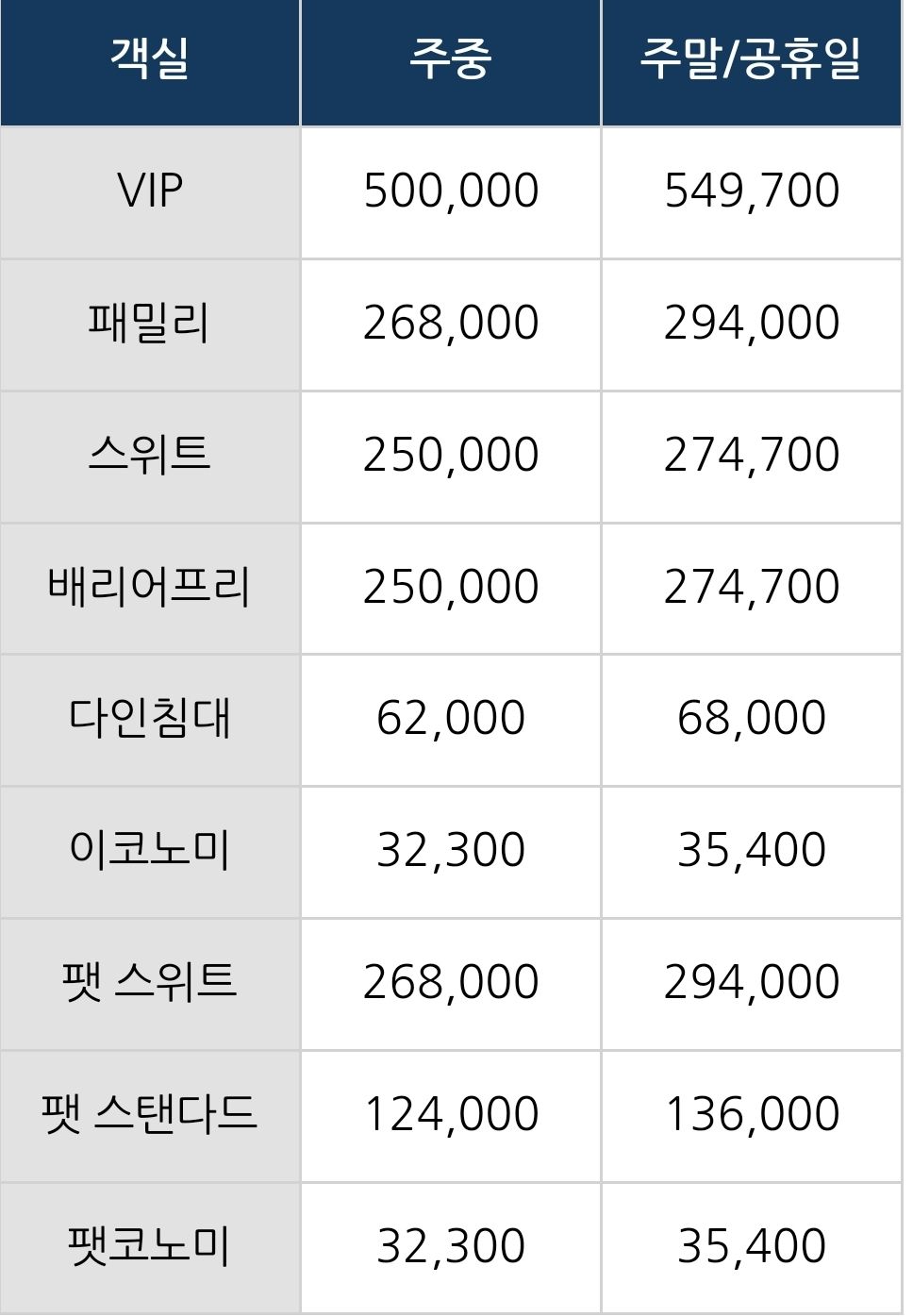 제일 저렴한 이코노미부터 가장 비싼 VIP룸, 반려견과 함께 여행할 수 있는 방도 따로 마련되어 있습니다.