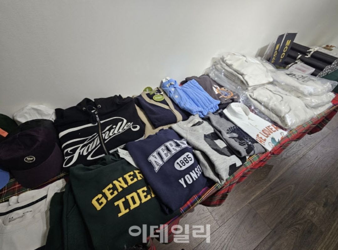 현무전 한켠에 마련된 플리마켓 부스에서 제품을 판매중인데 전현무가 직접 기부한 의류, 가방, 모자 등으로 구성되어 있습니다.