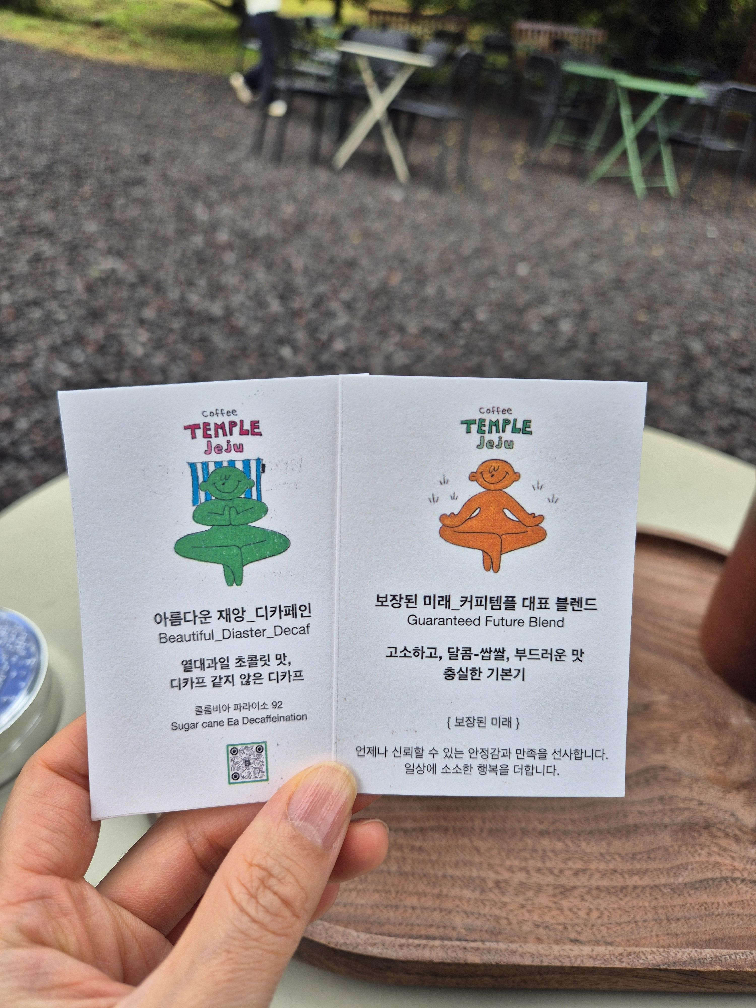 마시고 있는 커피에 대한 설명이 적혀있는 카드도, 원두의 이름도 귀여웠어요.