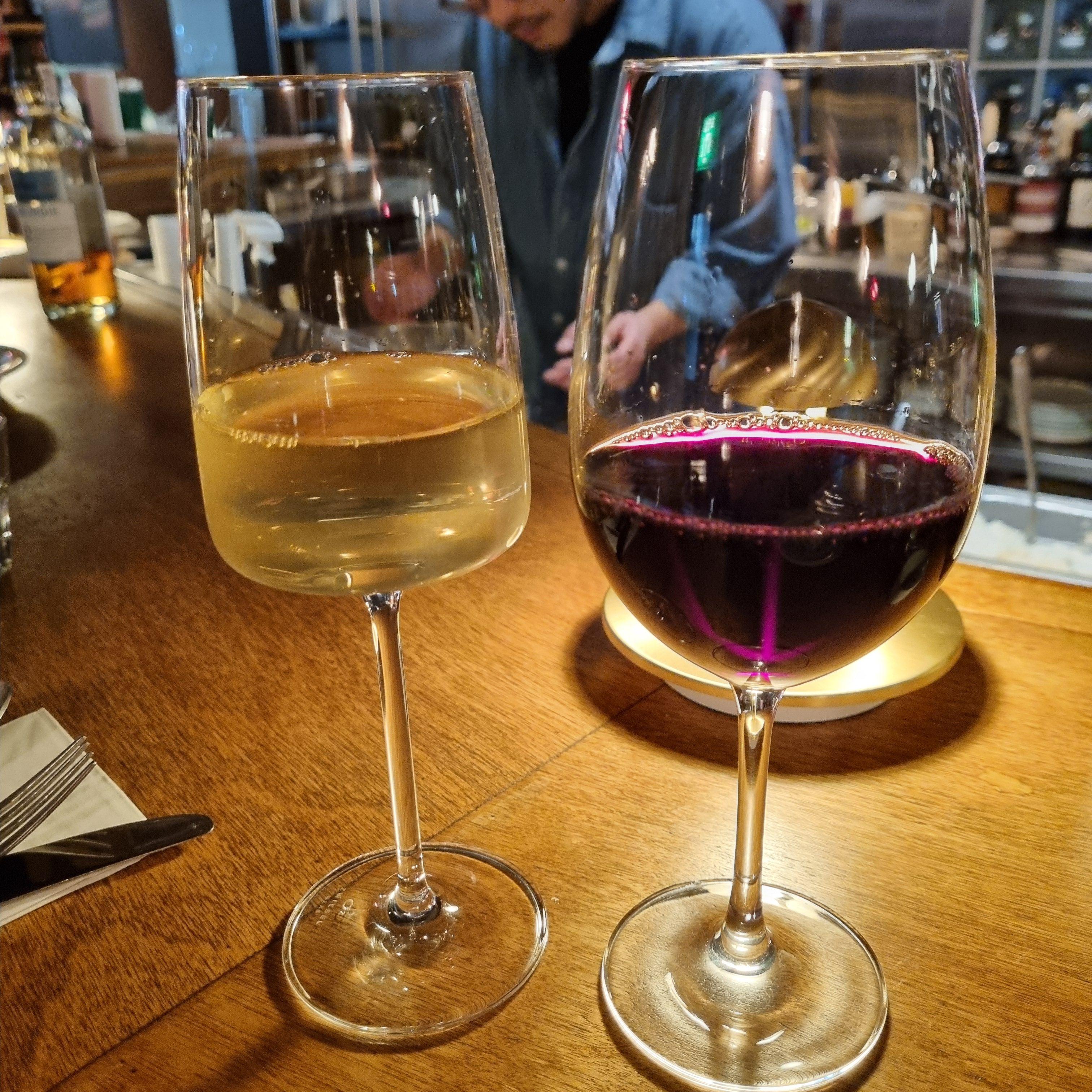 두 사람이 먹기에 적당하다는 30,000원짜리 오마카세를 주문했고, 술은 화이트와인과 레드와인으로 한잔씩 주문했어요.