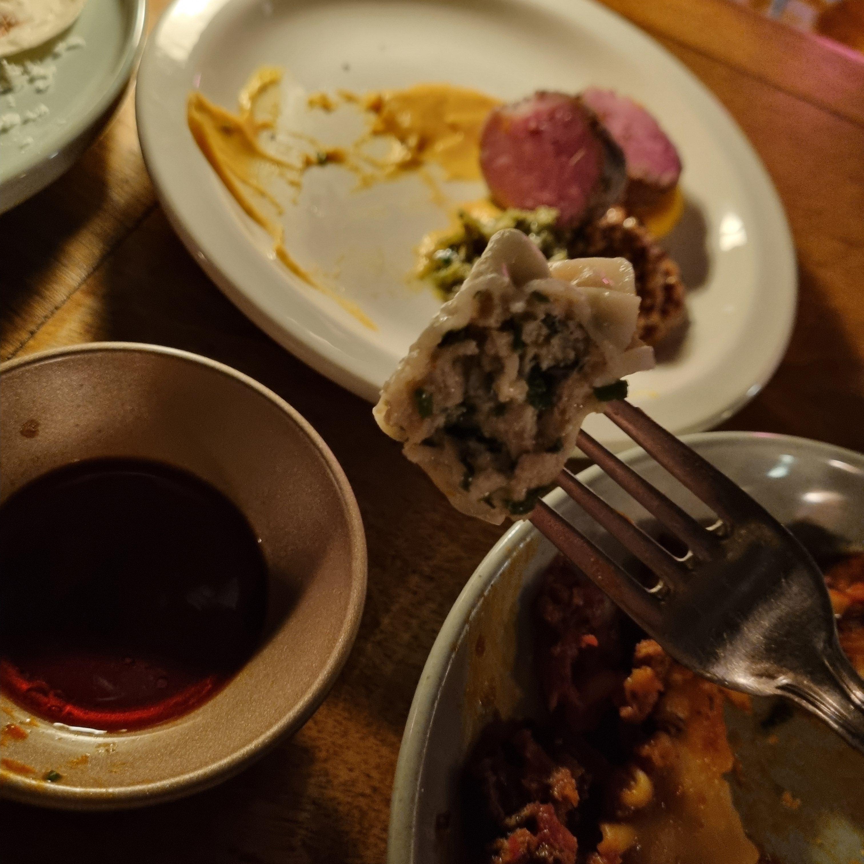 고기는 너무 부드러웠고 노란 단호박소스와 홀그레인 머스타드, 꽈리고추 퓨레와 같이 먹으면 더 맛있었어요.