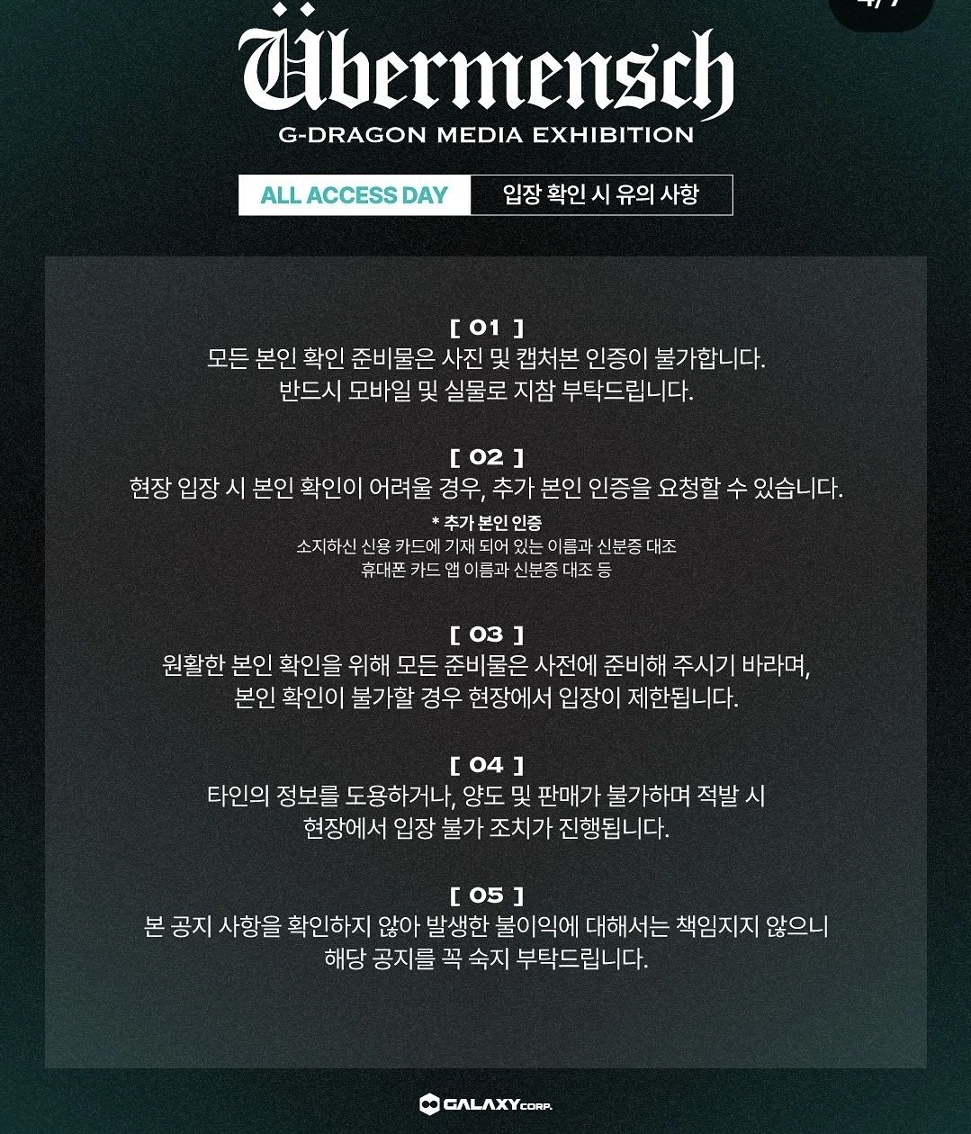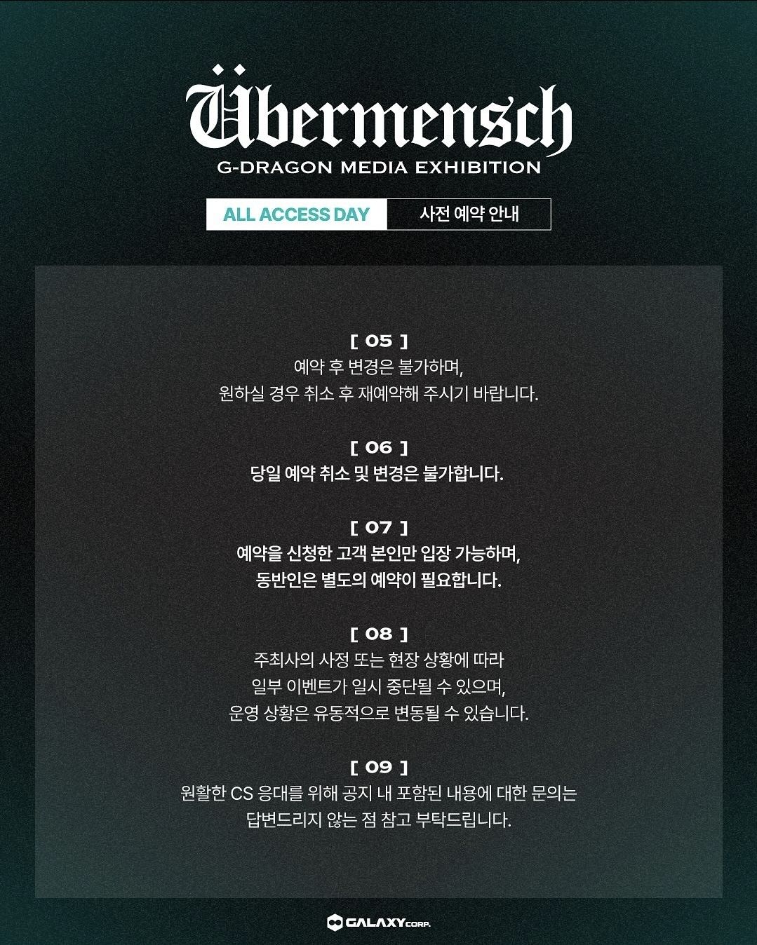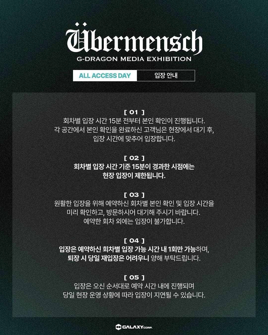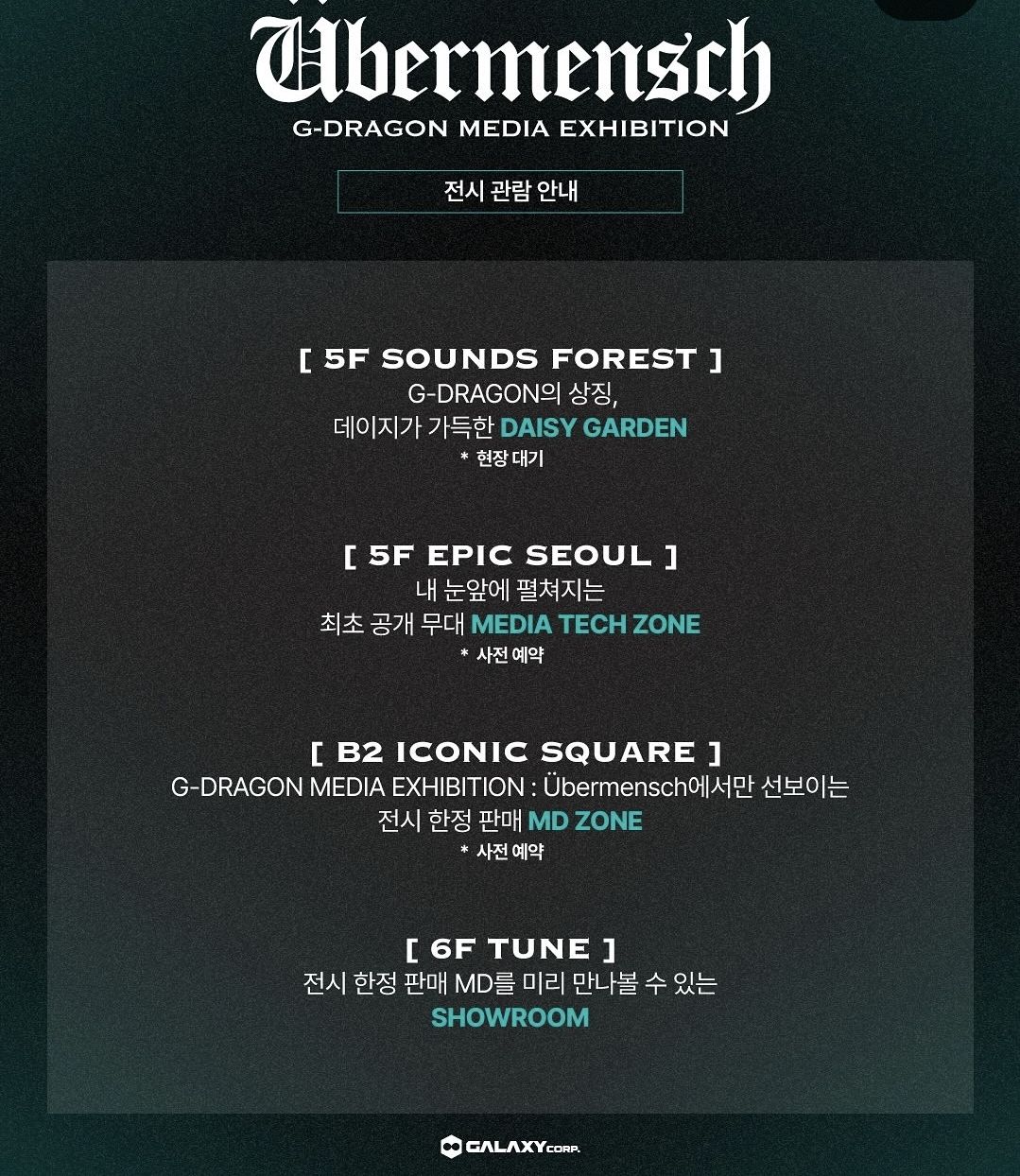 이번 전시는 지드래곤이 11년 5개월만에 발매한 세번째 정규앨범을 관통하는 '위버맨쉬'의 메시지를 담아 디지털 미디어 아트 형태로 꾸며져 있습니다.