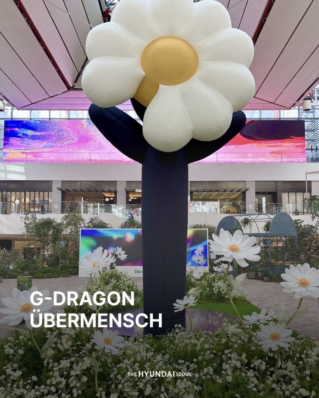 더현대서울 5층에는 지드래곤의 상징인 데이지로 채워진 '데이지 가든'이 펼쳐져 있습니다.