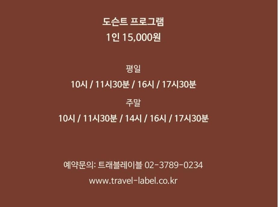 도슨트 프로그램은 1인 15,000원이고 평일 10시/ 11시30분/ 16시/ 17시30분