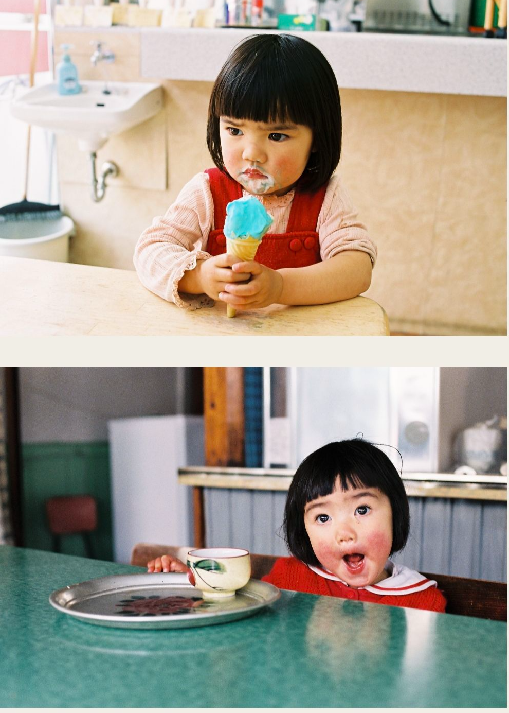 인중을 타고 흐르는 콧물, 날름 내민 혀와 아이스크림이 범벅된 얼굴 등 자연스럽게 포착된 아이 사진은 순진무구한 동심이 그대로 전달되는 것 같습니다.