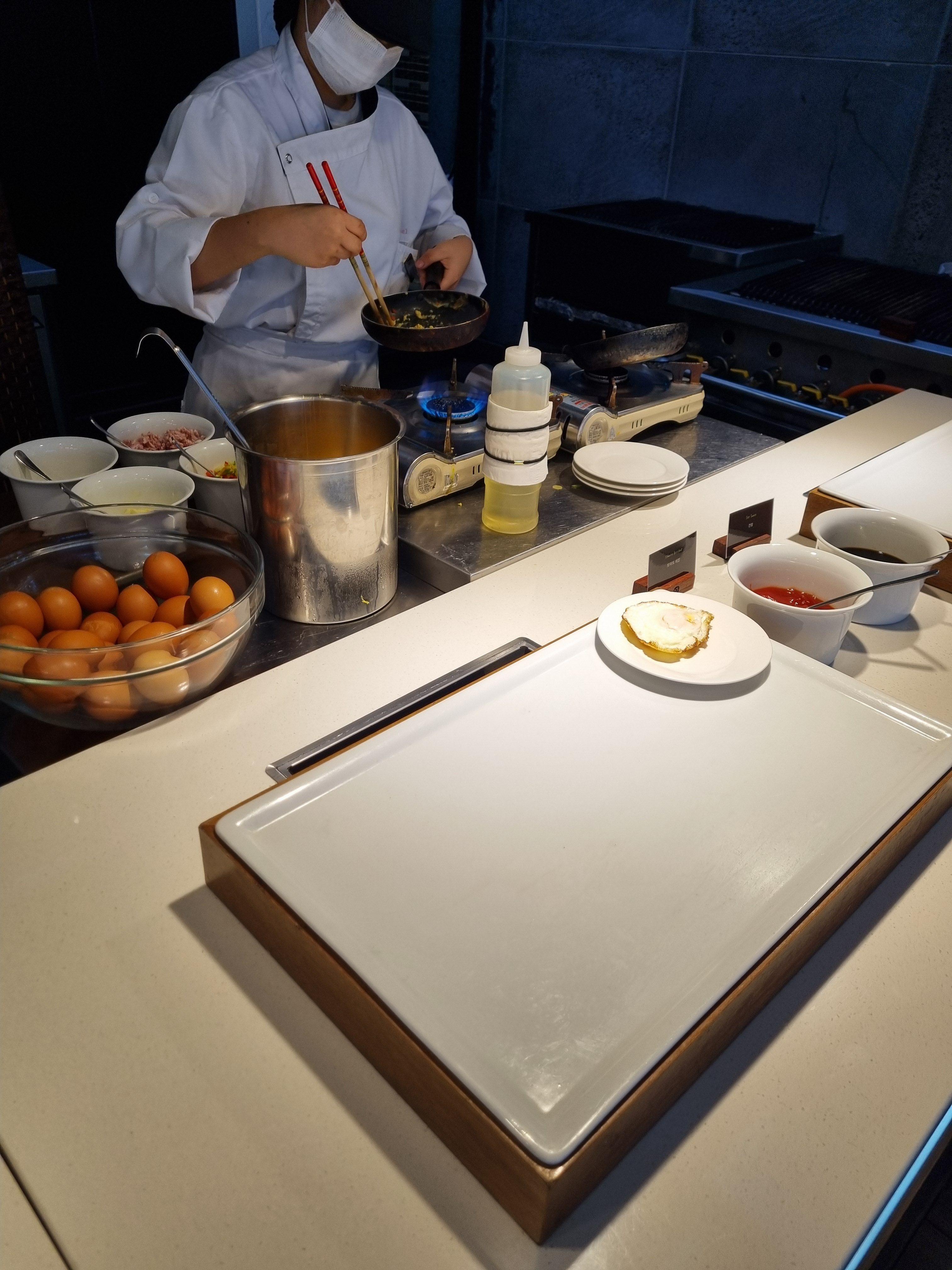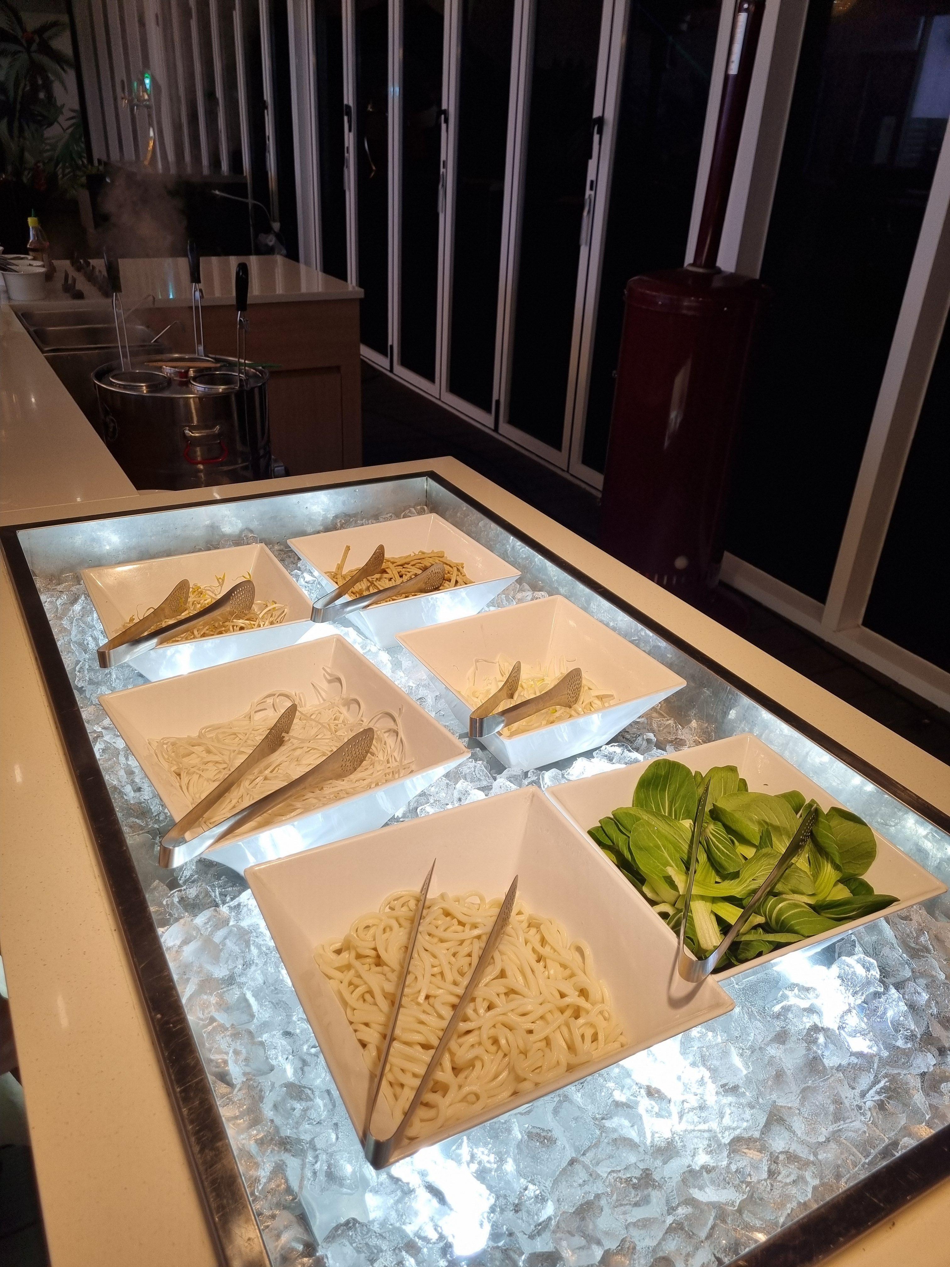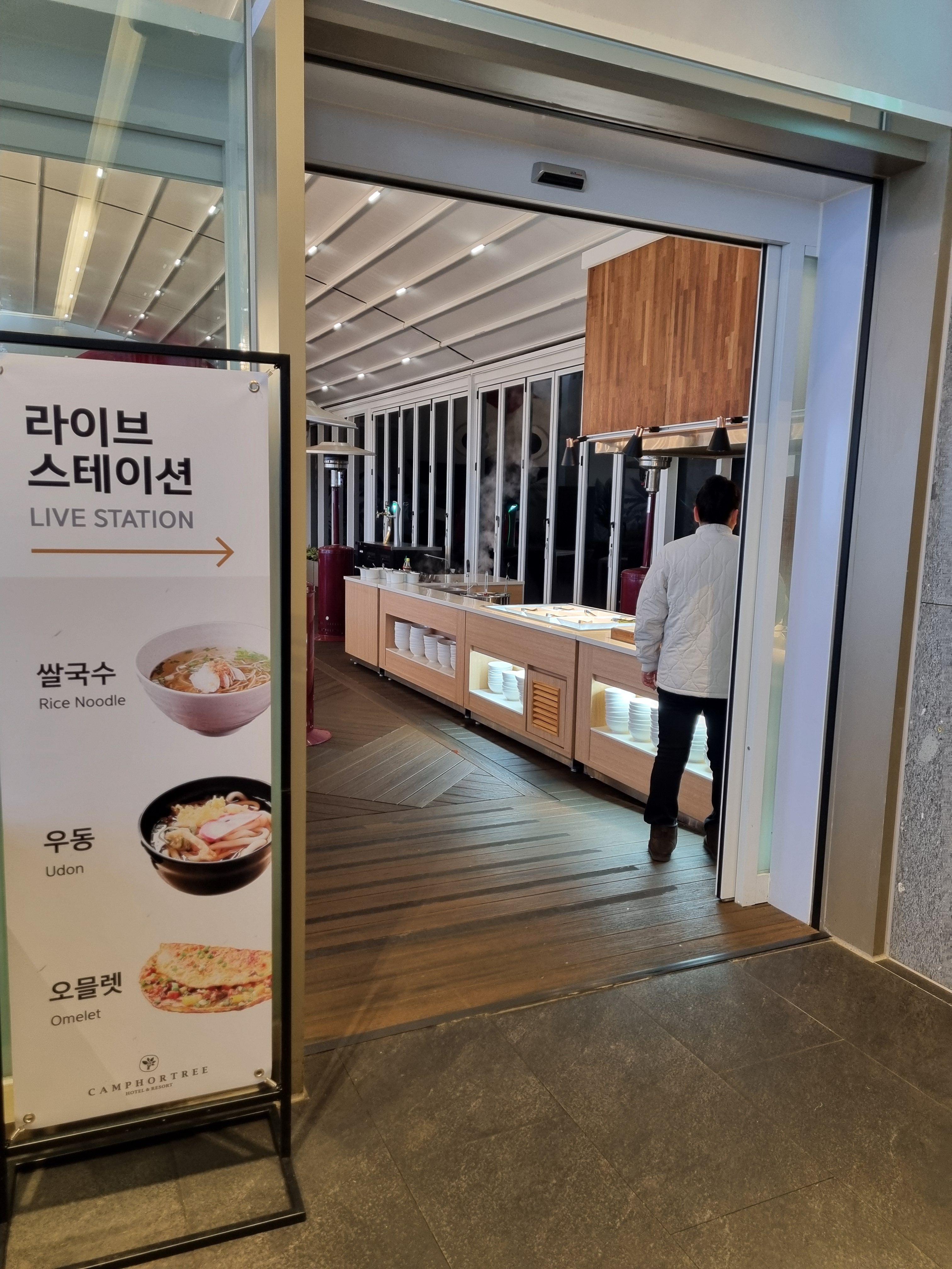 안쪽에 라이브 스테이션이 있는데 여기서 계란후라이나 오믈렛, 쌀국수, 우동 등을 즉석에서 조리해 주십니다.