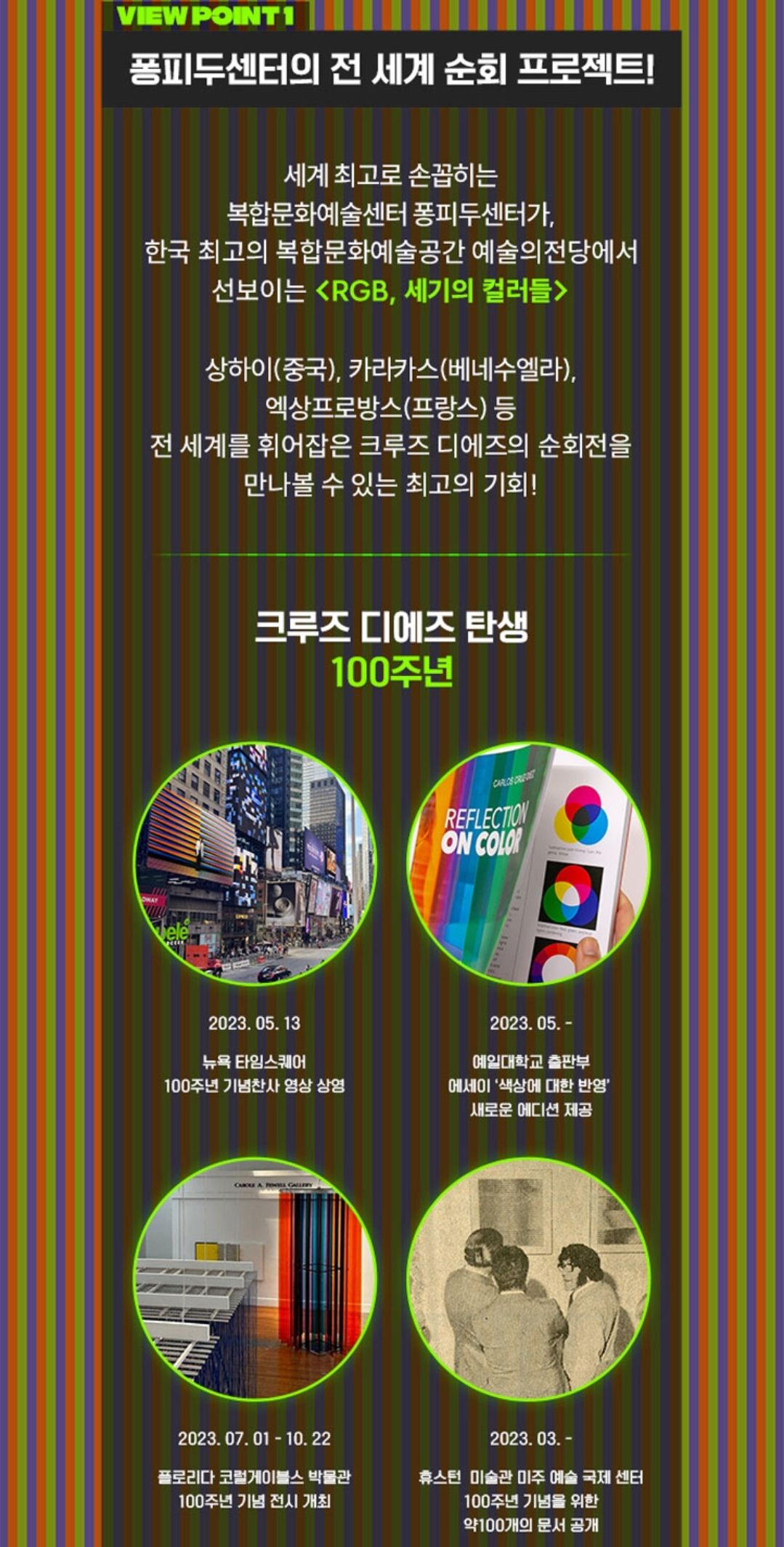 퐁피두센터는 작가가 생전 고안한 특별 프로젝트 <RGB, THE COLOR OF THE CENTURY>를 전세계에서 개최해왔고,