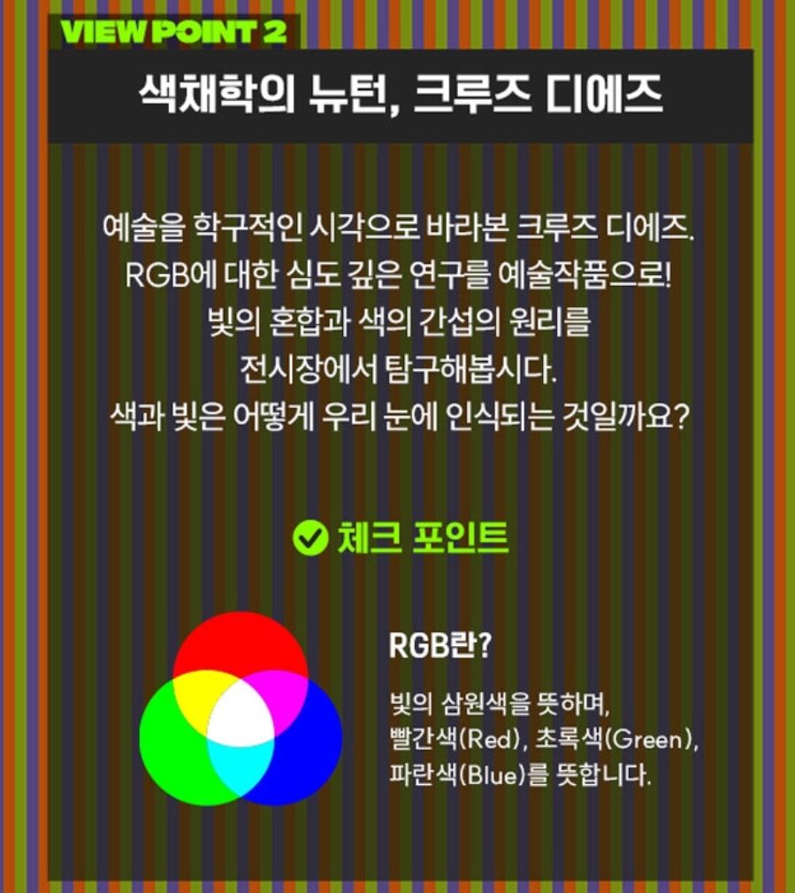 예술을 학구적인 시각으로 바라본 크루즈 디에즈는 RGB에 대한 심도 깊은 연구를 예술작품으로 만들어냈는데,