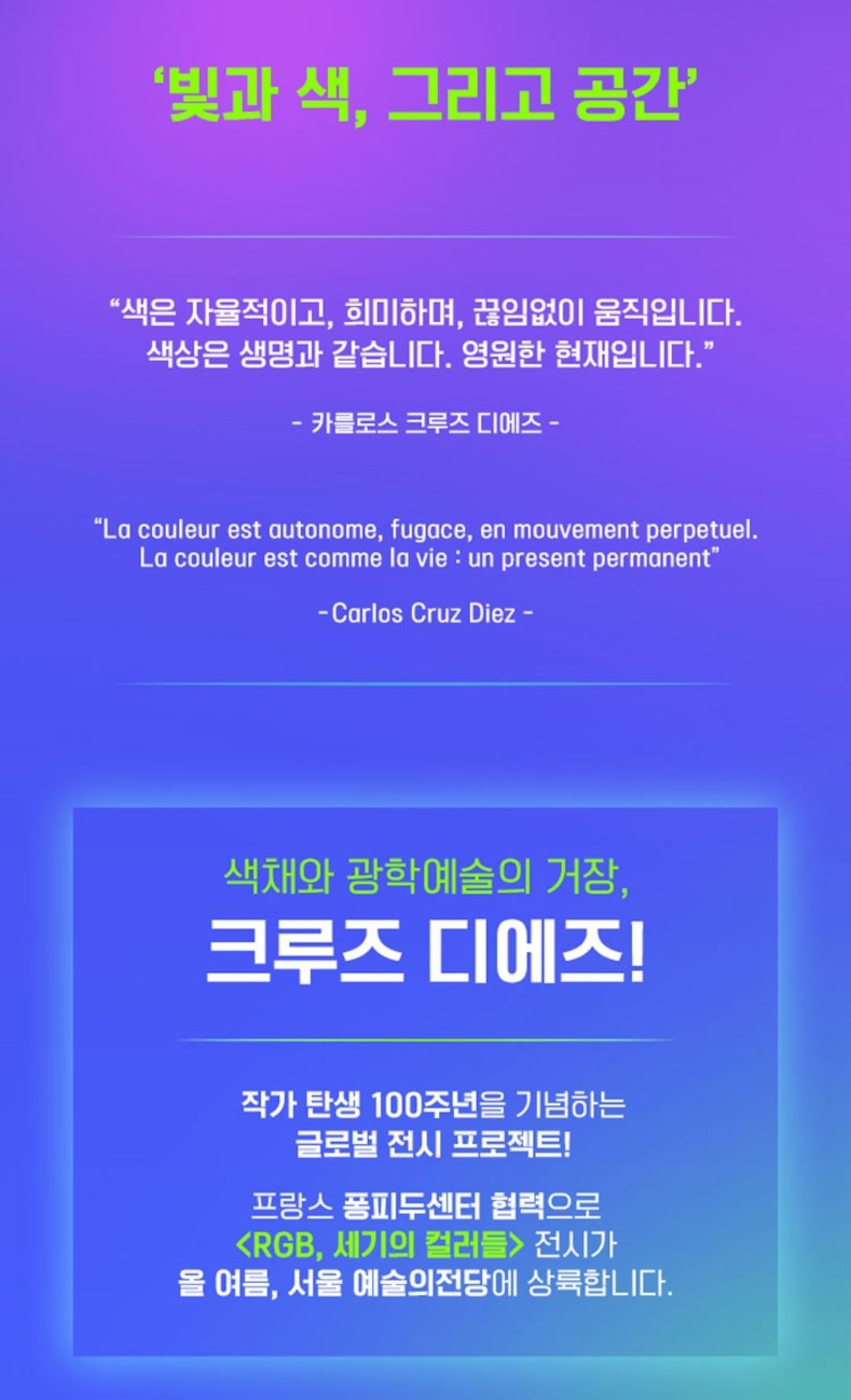색채와 광학예술의 거장 크루즈 디에즈의 전시 < RGB, 세기의 컬러들 >이 예술의 전당에서 열립니다.