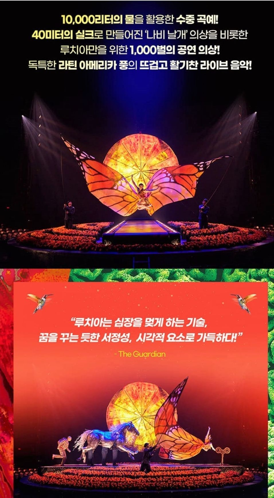 2022년 공연 판매 랭킹 1위 17만 관객을 동원했던 태양의 서커스 '뉴 알레그리아'공연에 이어 올해 다시 태양의 서커스 공연 '루치아'가 10월말에 시작됩니다.