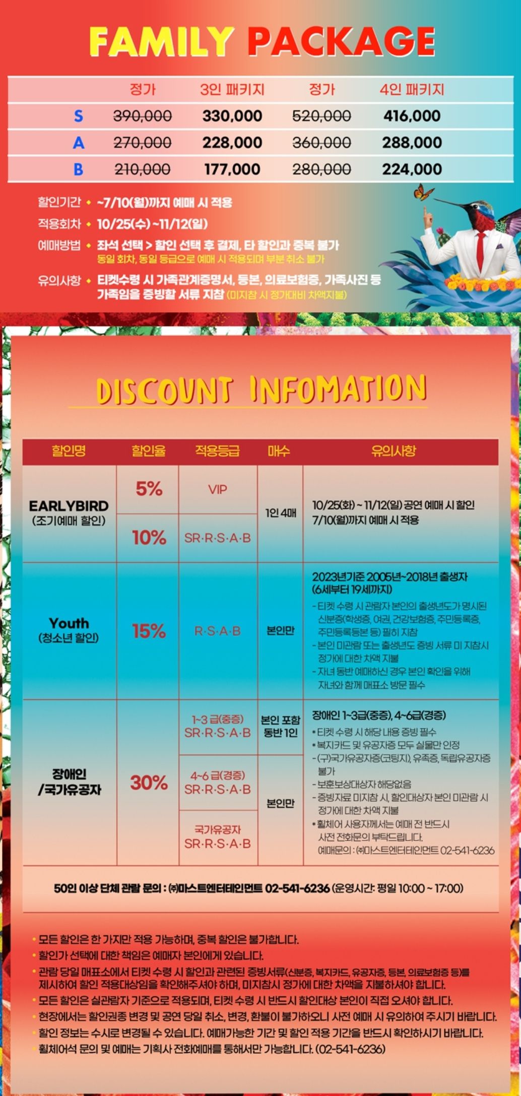 가족끼리 패키지 할인으로 예매하면 20% 할인까지 된다고 하니 가족끼리 보실 분들은 꼭 얼리버드로 패밀리 패키지 예매하세요.
