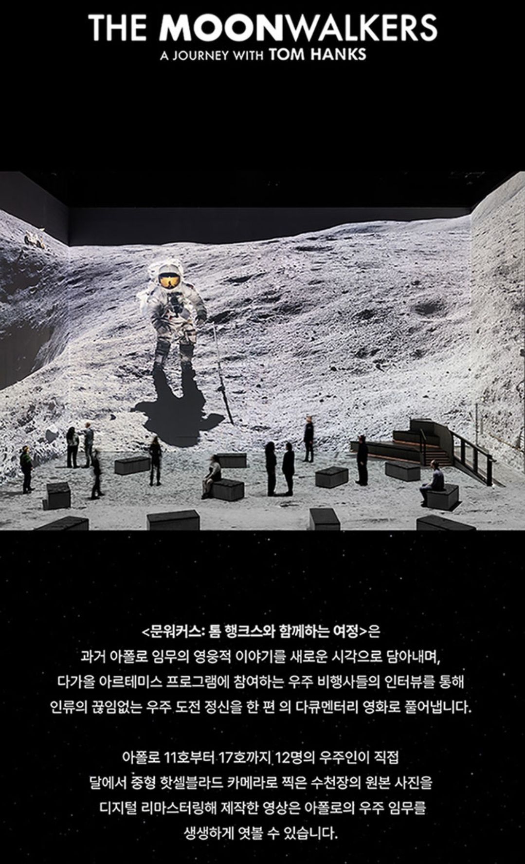 실제 달 표면을 걷는 것 같은 영화적 경험과 감동을 느낄 수 있습니다.
