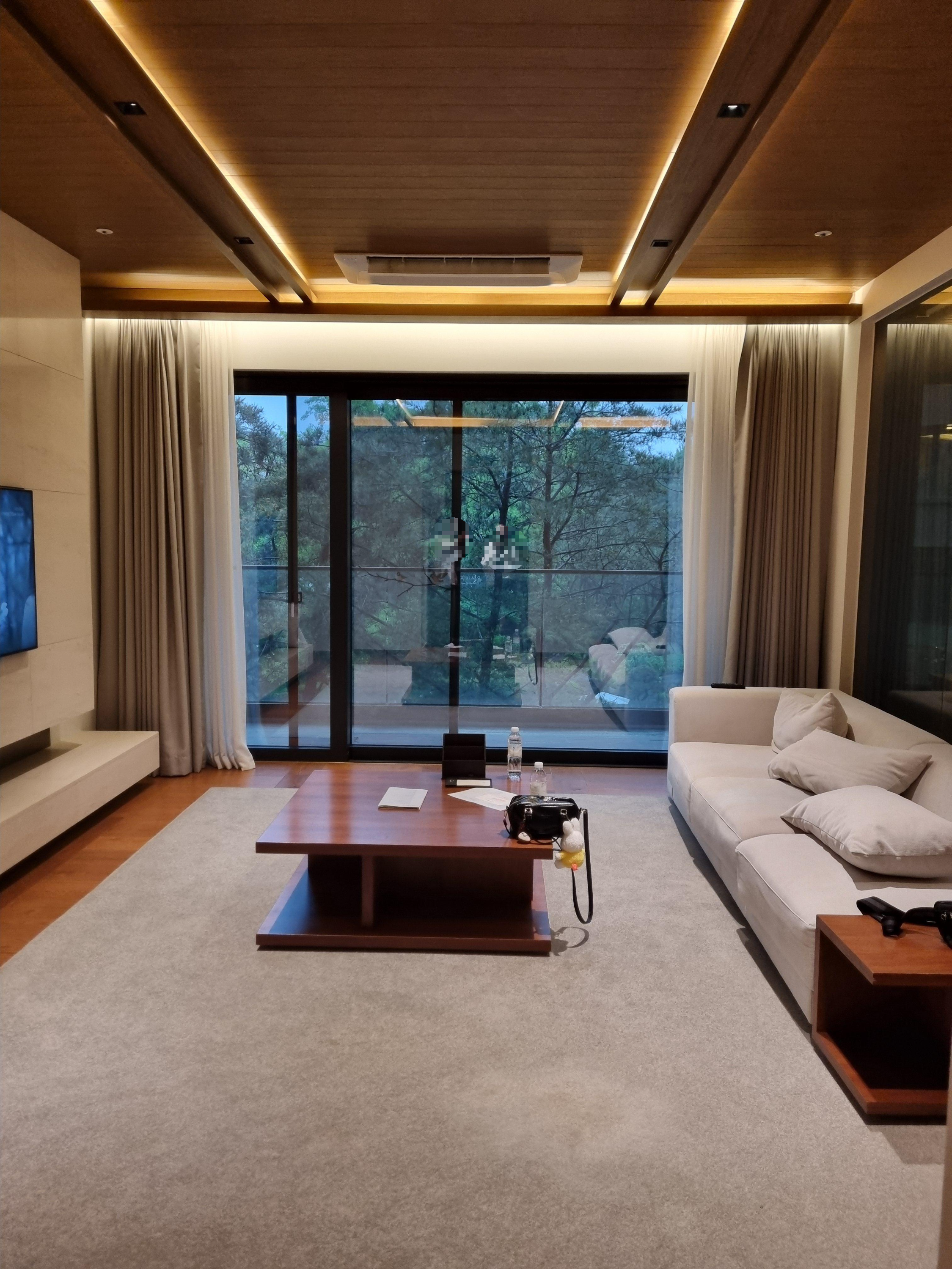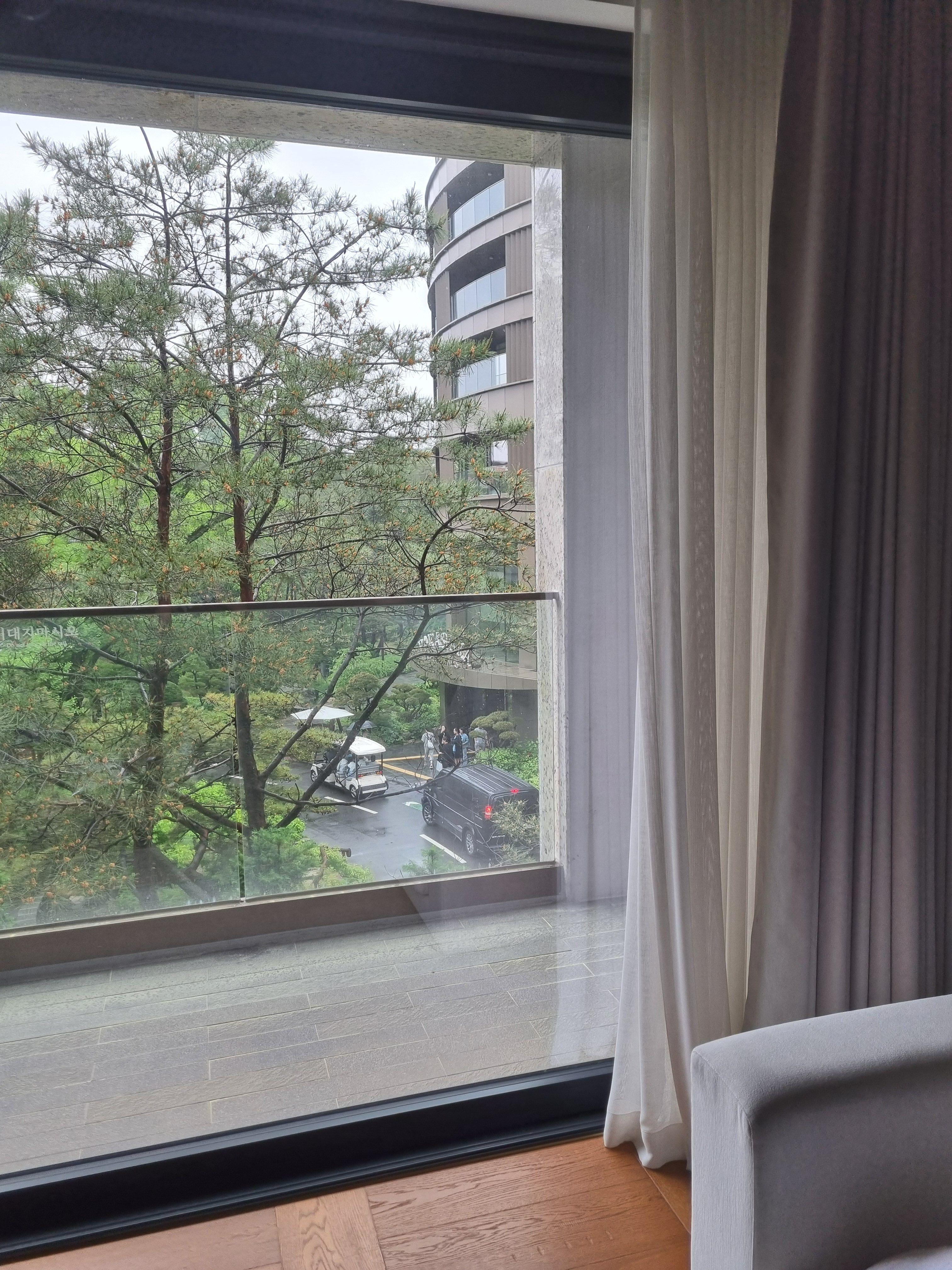 통창으로 속시원히 보이는 뷰였는데 안이 밝으면 밖에서도 다 보이는 유리라 탈의를 하고 이용한다면 블라인드 꼭 내려야합니다.