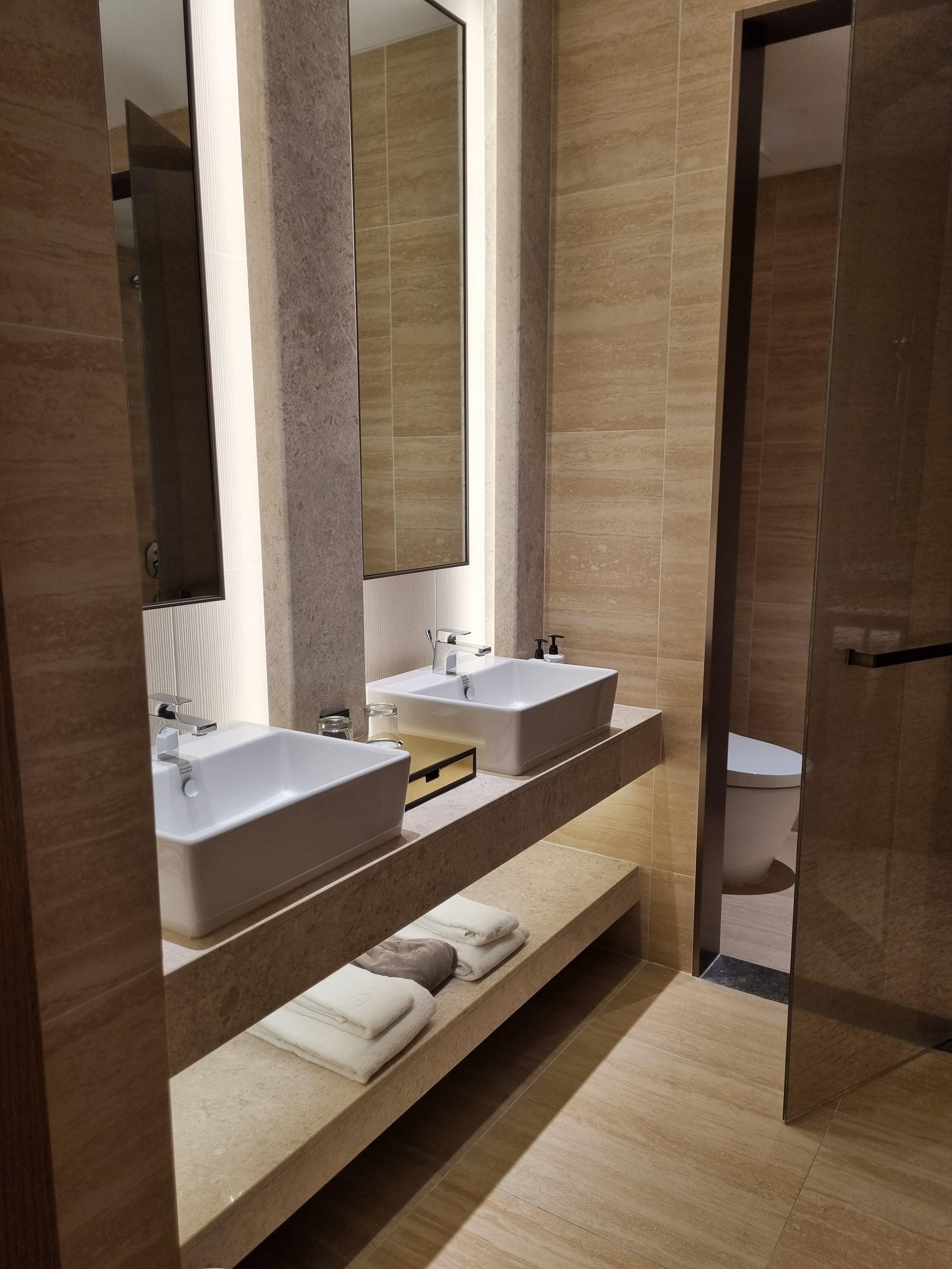 욕실은 세면대가 두개라 편리하고 왼쪽에 변기, 오른쪽에 샤워부스 나눠져 있어서 좋았어요.