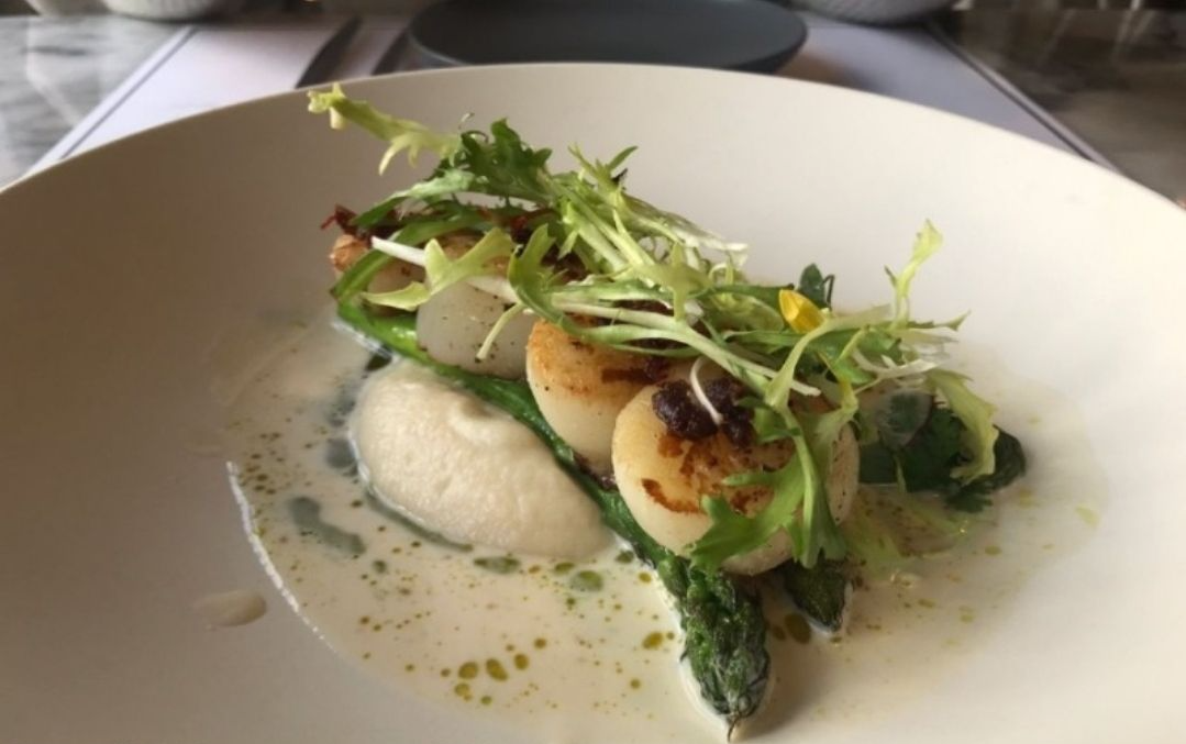 까페산테(17,500) - 구운 가리비 관자, 매콤하게 절인 관자살, 셀러리악 에멀젼, 구운 아스파라거스