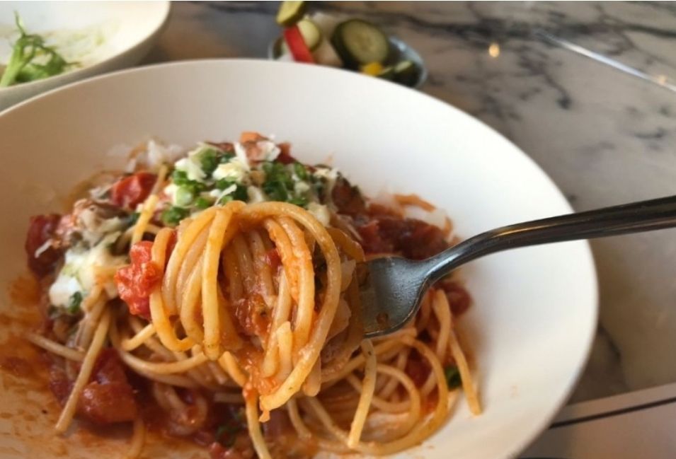 초등조카를 위해 무난한 뽀모도로 스파게티를 시켜봤는데, 다른 레스토랑에서 먹던 스파게티와는 다른 깊은 맛이 느껴집니다.