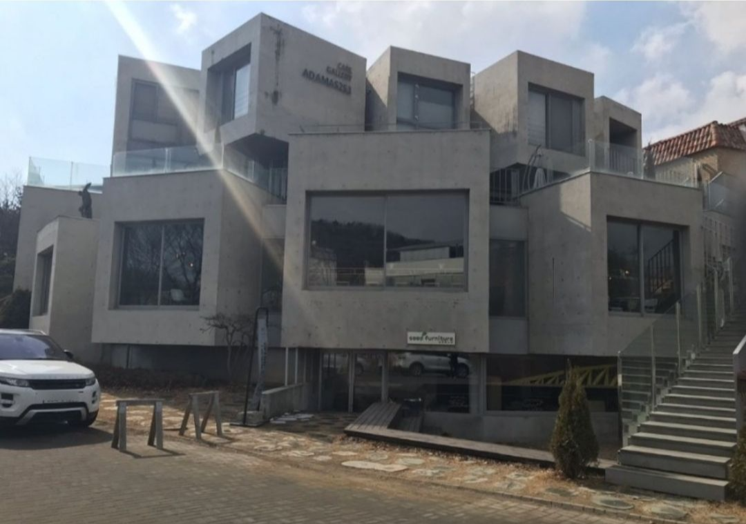 아다마스253은 갤러리카페로, 유니크한 회색빛의 큐브형 건물의 외관이 눈에 띕니다.  파주 헤이리마을의 랜드마크같은 이미지를 갖고 있기도 합니다.