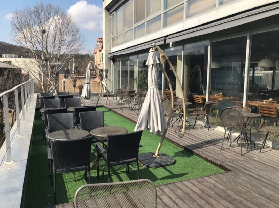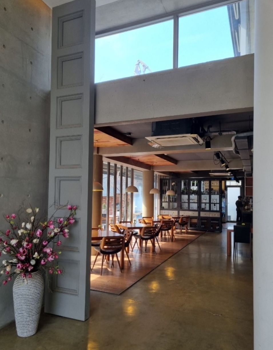 2층은 1층보다 통창으로 햇빛이 더 들어오는 밝은 분위기의 공간이고 테라스에서 먹을 수 있는 공간도 있습니다.