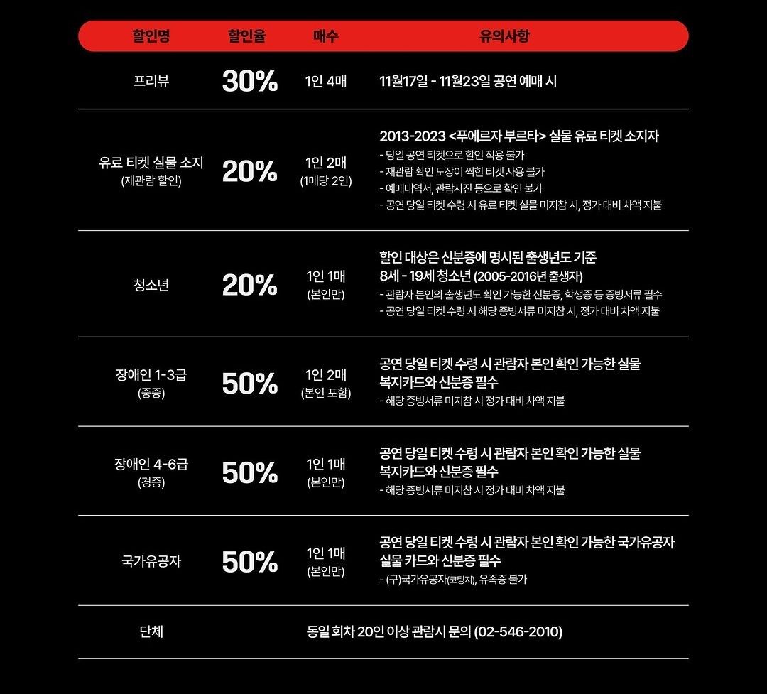 11월 17일부터 23일까지의 공연을 예매하시면 프리뷰할인으로 30% 할인된 가격으로 예매하실 수 있으니 참고하세요.