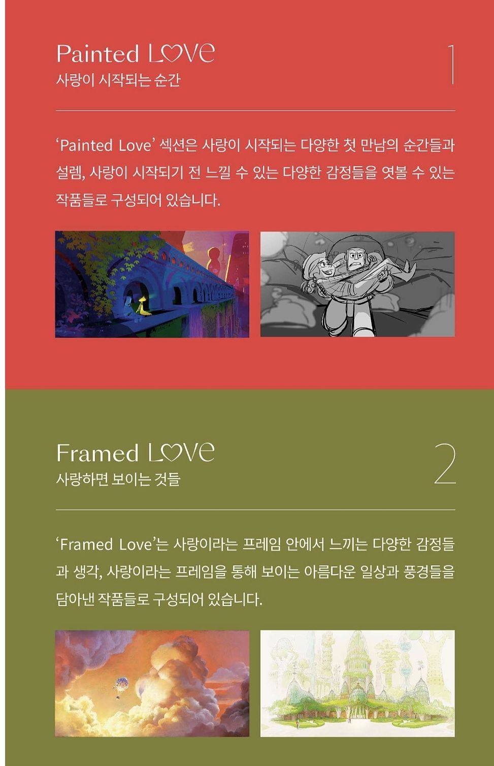 첫번째 'Painted Love : 사랑이 시작되는 순간' 섹션은 사랑이 시작되는 다양한 첫 만남의 순간들과 설렘, 사랑이 시작되기전 느낄 수 있는 감정들을 엿볼 수 있고