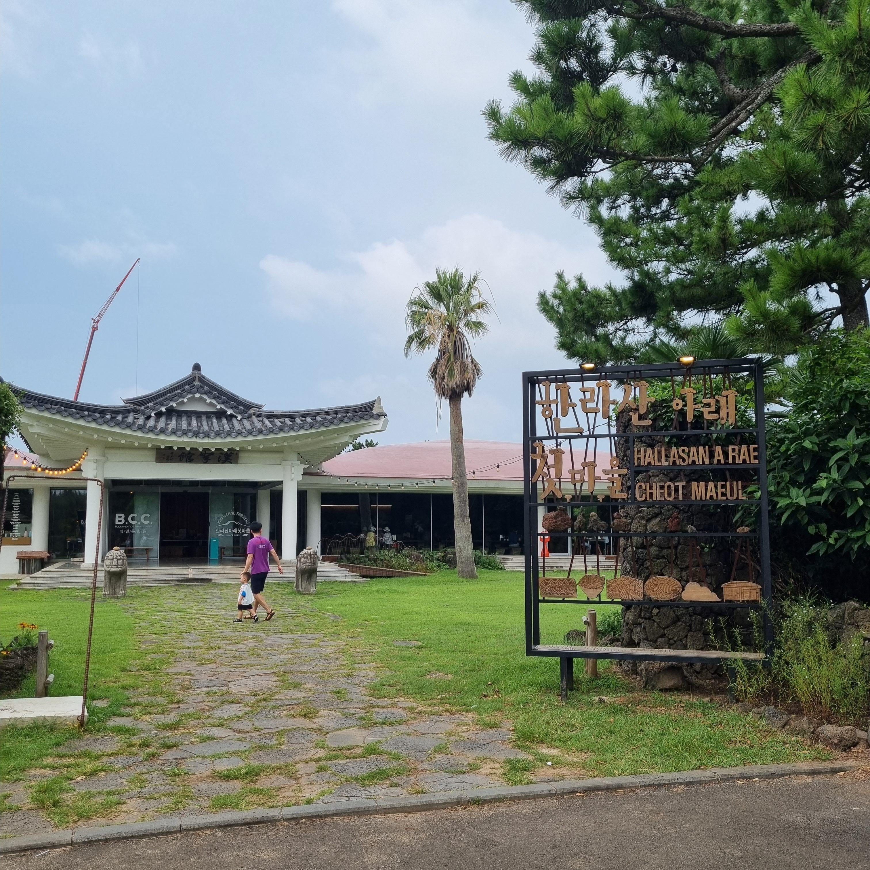 2박 3일 제주여행에서 마지막날 점심으로 갔던 한라산아래첫마을 제주민속촌입니다.