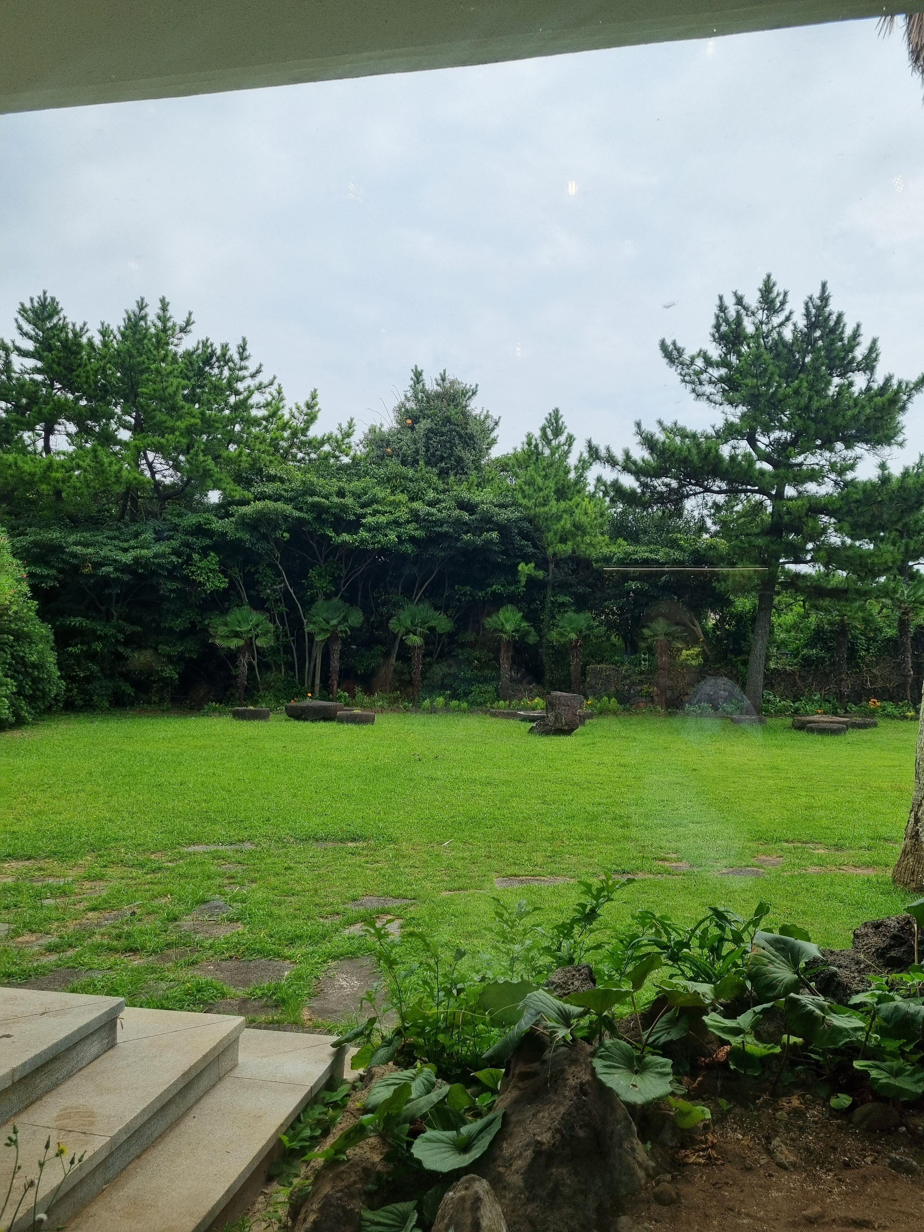 길게 이어진 창가쪽 테이블에 앉으면 통유리로 밖의 정원이 보이는데 푸릇푸릇하니 너무 예쁘더라구요.