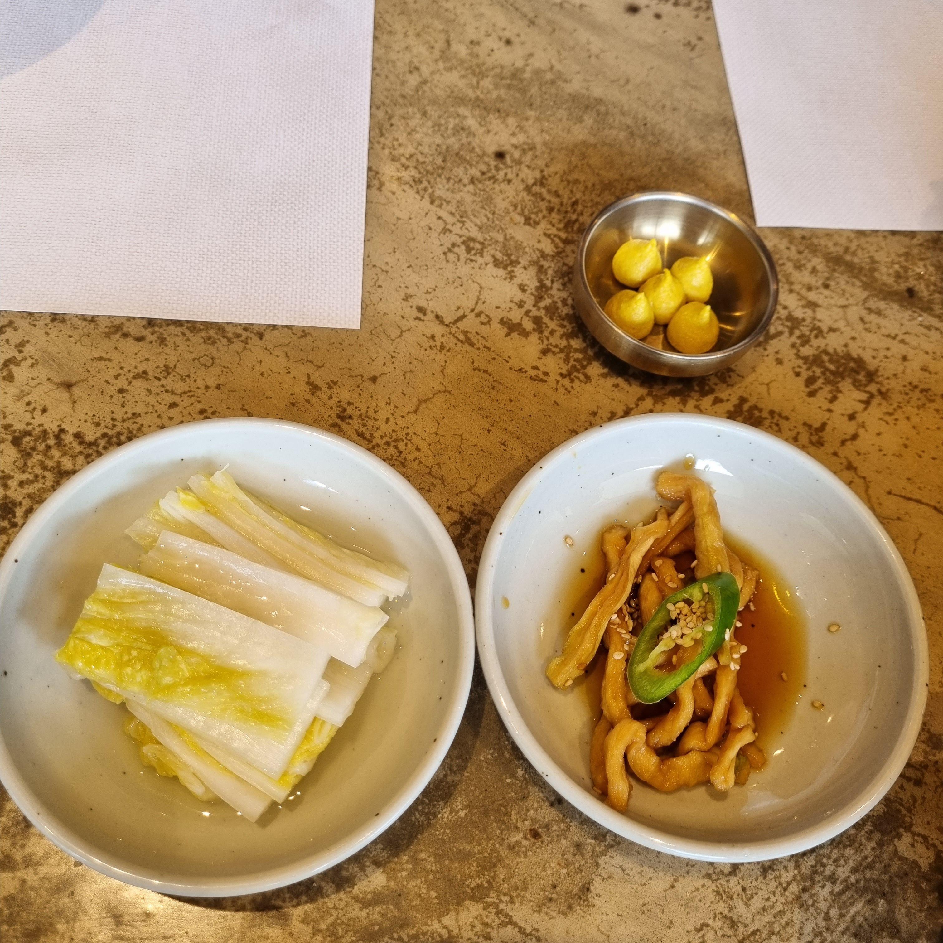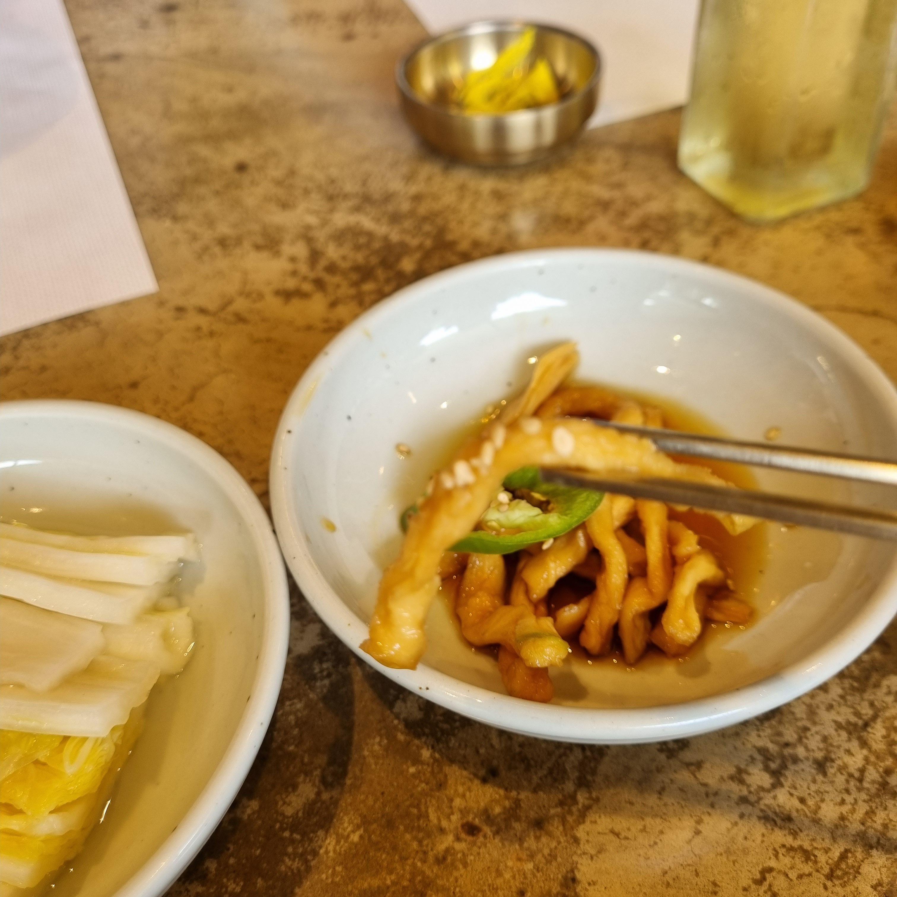 기본찬 백김치와 무말랭이를 간장에 살짝 절인? 반찬이 나오구요,