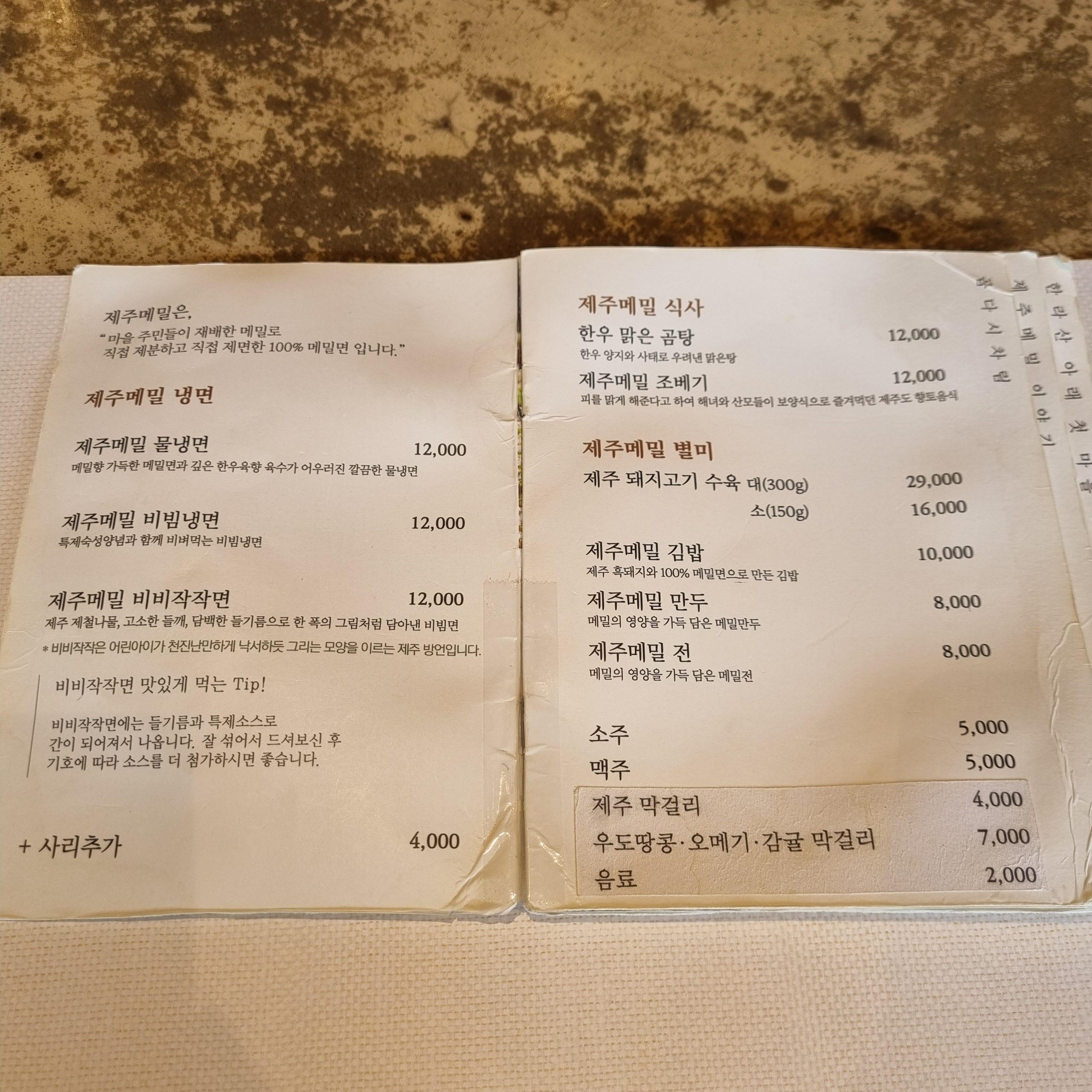 곰탕이나 메밀김밥, 메밀만두, 메밀전 등 다양한 다른 메뉴도 있어요.