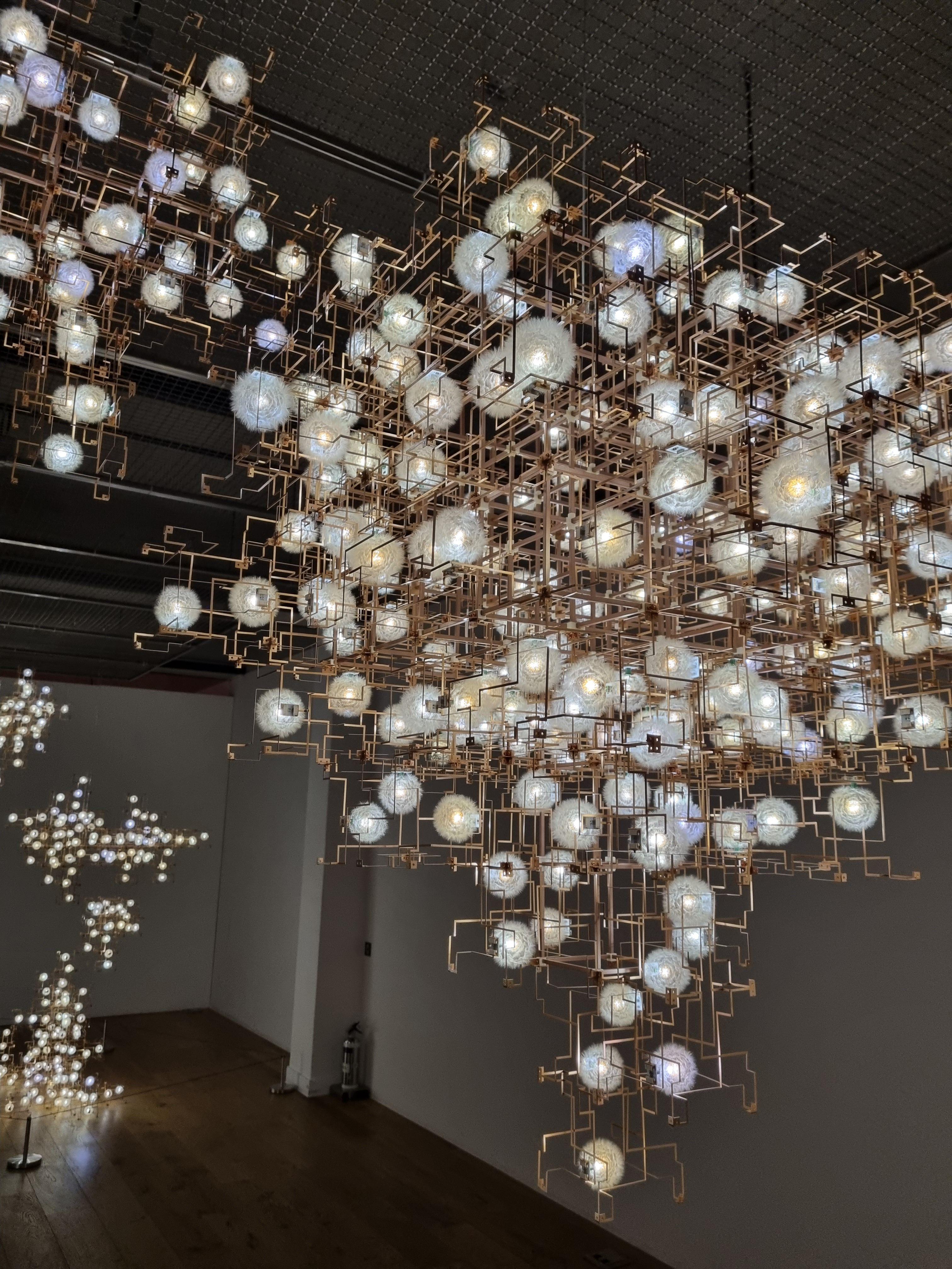 민들레 조명으로 이루어진 빛 조각인 이 작품은 암스테르담 전역에서 채취한 15,000여 개의 민들레를 건조시킨 후 씨앗 하나하나를 핀셋으로 떼어 LED 전구에 붙여서 완성했다고 합니다.