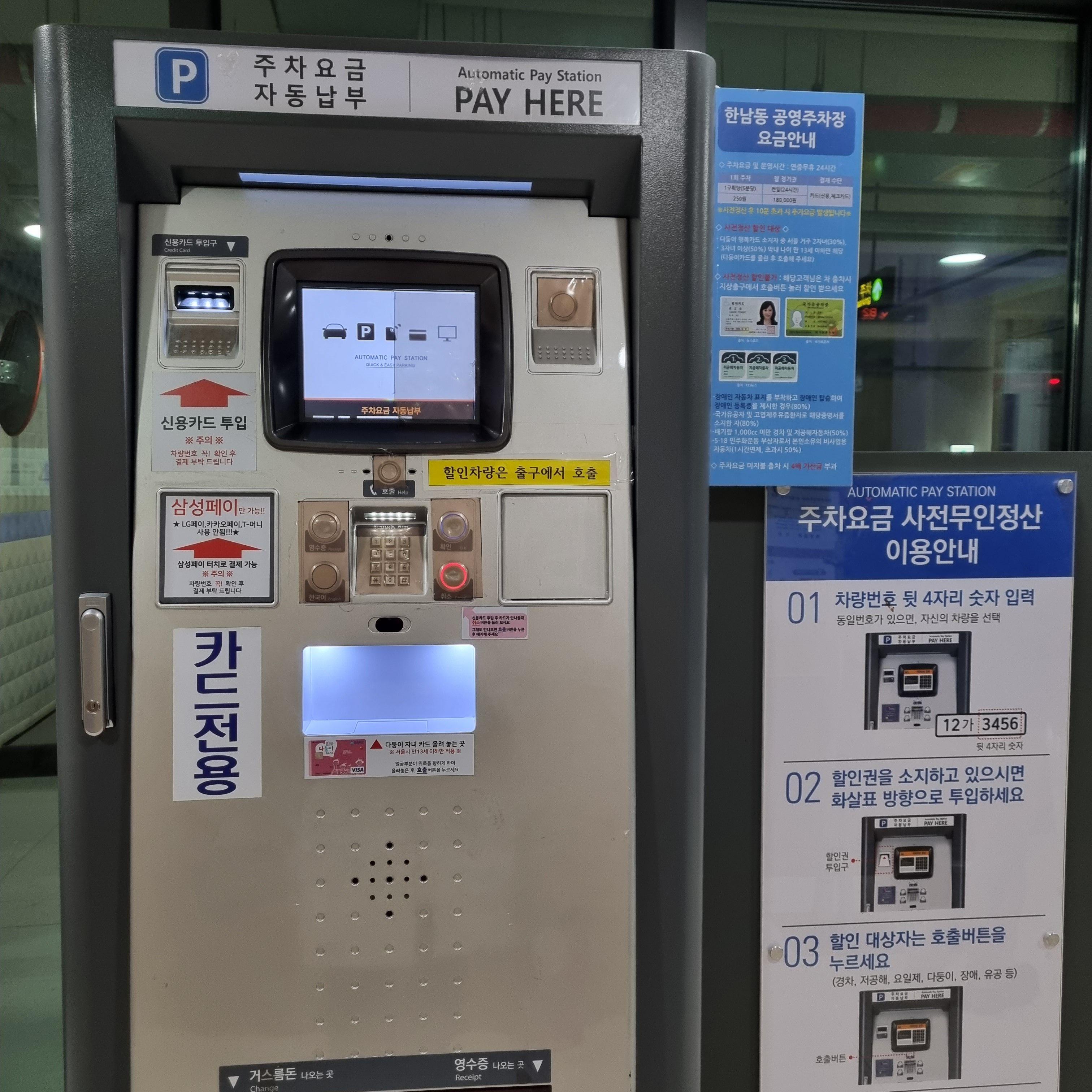 한남동 공영주차장은 10분당 500원(5분당 250원)이구요, 한남동 공영주차장이 만차라 도저히 안된다면 한강진역 공영주차장을 이용하셔도 좋습니다.(10분당 800원)