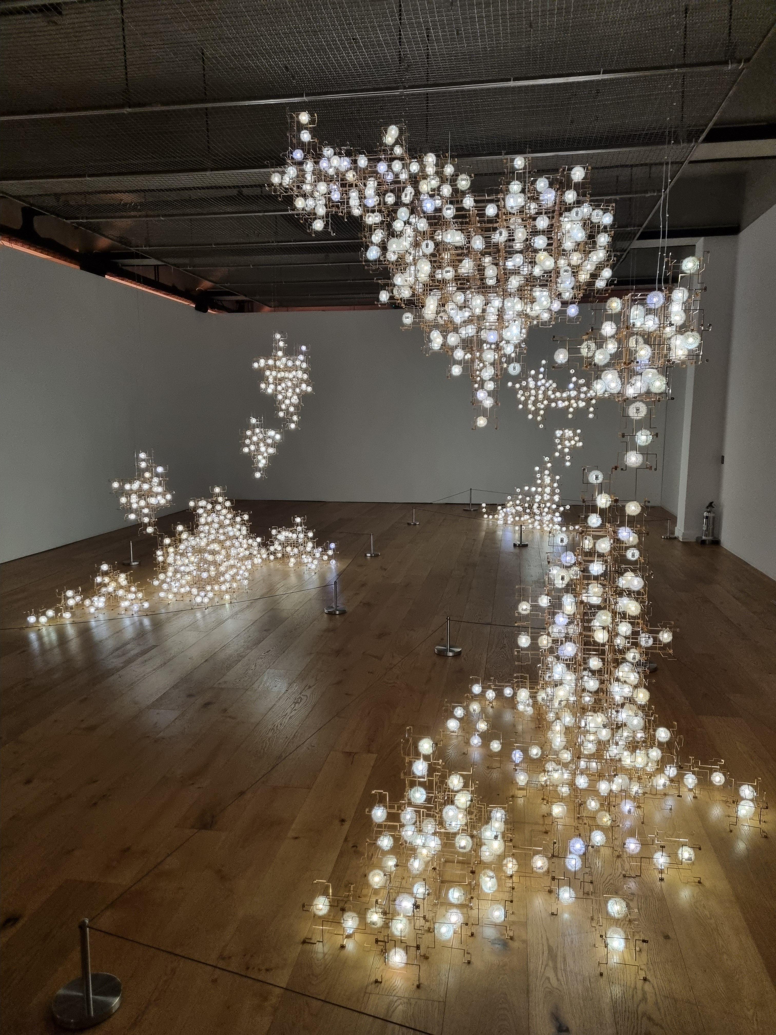 유리관 파도 작품 뒤 전시장으로 더 들어가면 드리프트의 대표작인 <Fragile Future> 가 빛을 발하고 있습니다.
