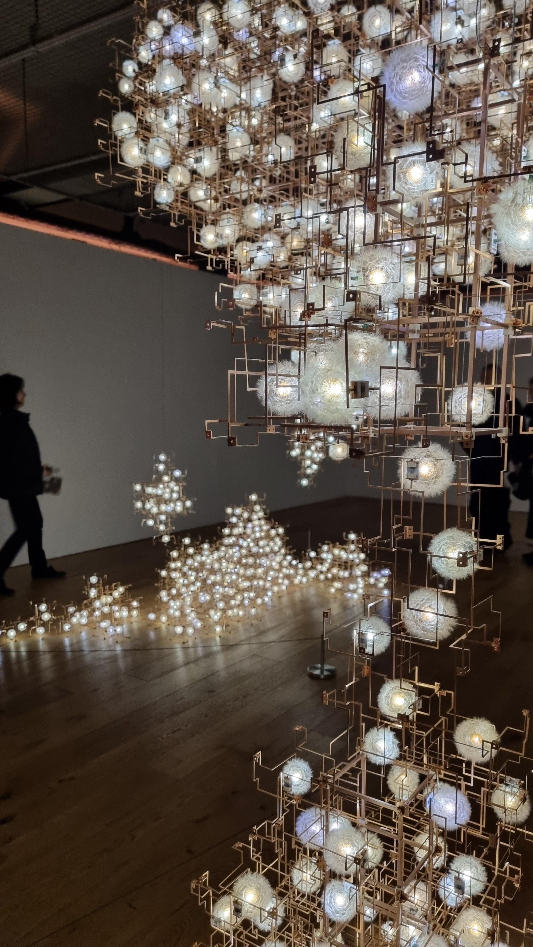 민들레 조명으로 이루어진 빛 조각인 이 작품은 암스테르담 전역에서 채취한 15,000여 개의 민들레를 건조시킨 후 씨앗 하나하나를 핀셋으로 떼어 LED 전구에 붙여서 완성했다고 합니다.