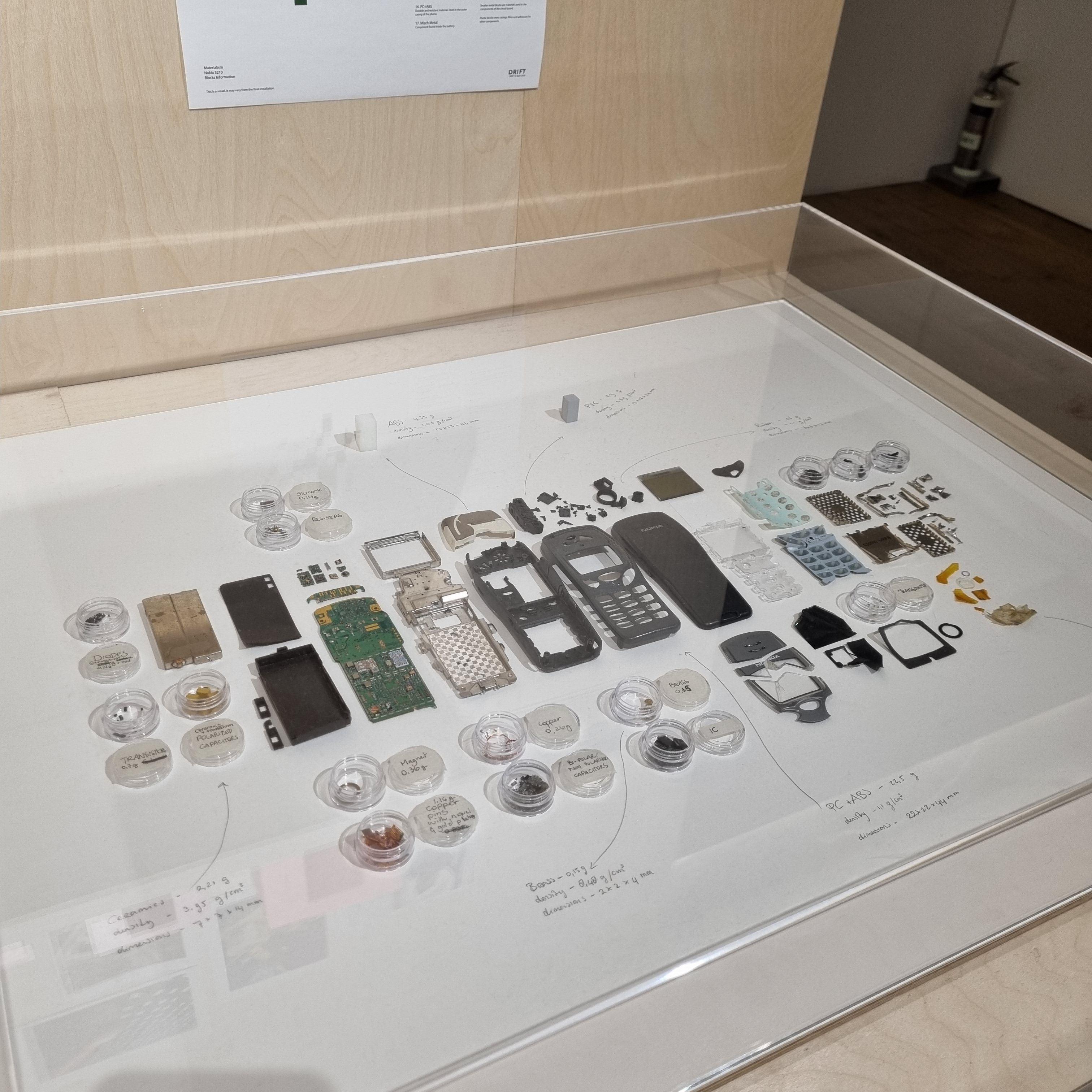 이렇게 휴대폰, 시계 등과 같이 우리 일상의 일부이자 기술의 진보를 보여주는 상징적인 오브제들은 철, 구리, 알류미늄 등 재료의 단위로 해체되고, 그 물질의 규모를 체감할 수 있는 정확한 양의 블록으로 전환된 작품들입니다.