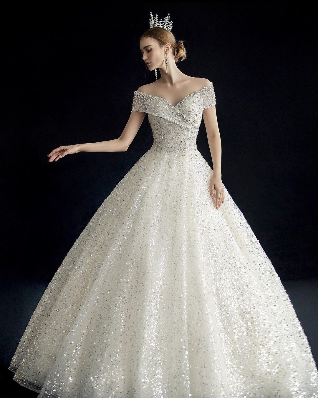 어두운 웨딩홀 -비즈가 많은 화려한 드레스