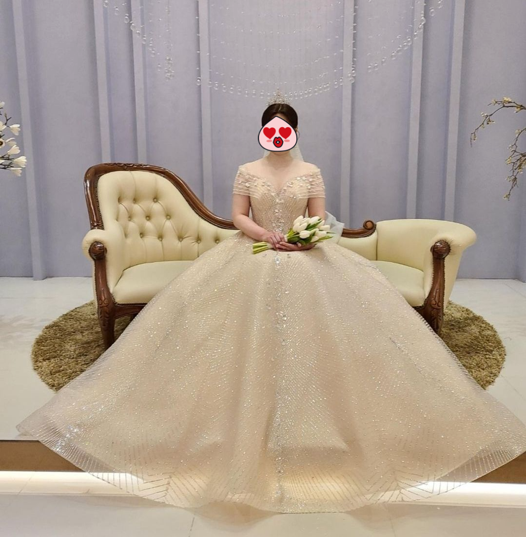 단 비즈가 화려한 드레스는 사진에 그 화려함이 담기지 않기 때문에 나중에 사진이 별로 안이쁠까봐 걱정하시는 신부들도 있지만, 본식드레스는 사진보다 실물로 봤을때 예쁜 드레스를 선택합니다.