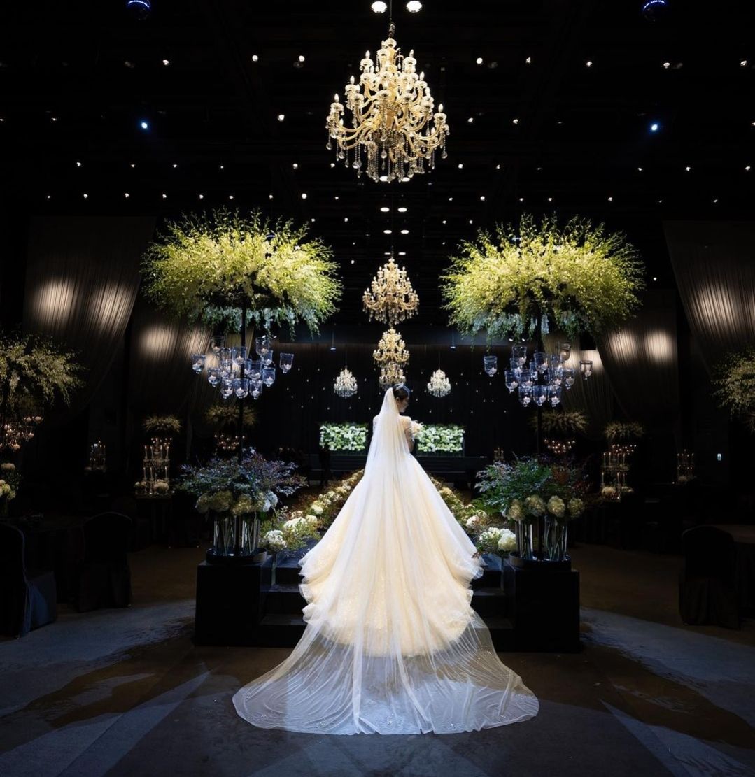 어두운웨딩홀 - 뒤트레인이 긴 드레스