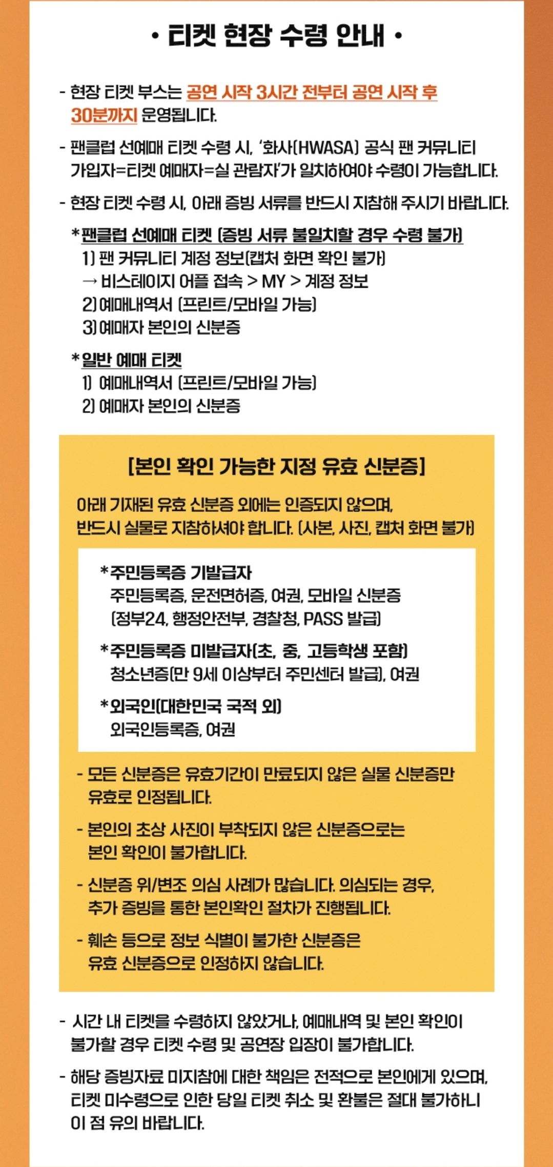 화사 콘서트 티켓 배송 & 현장 수령 안내